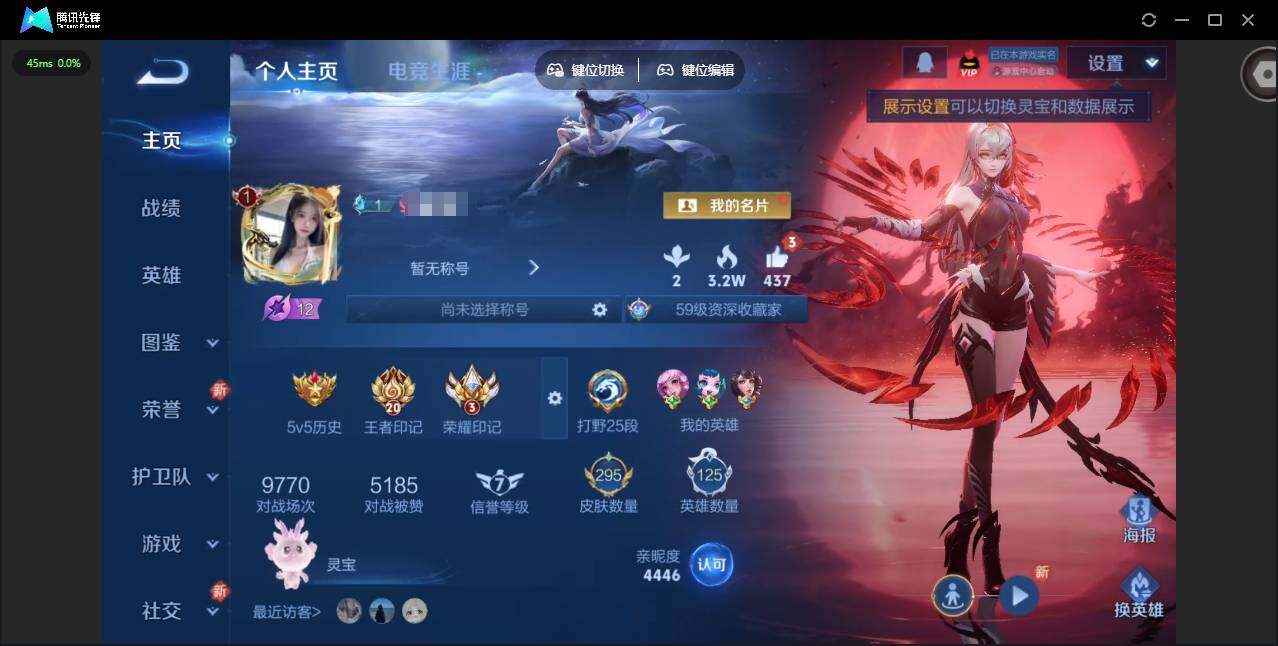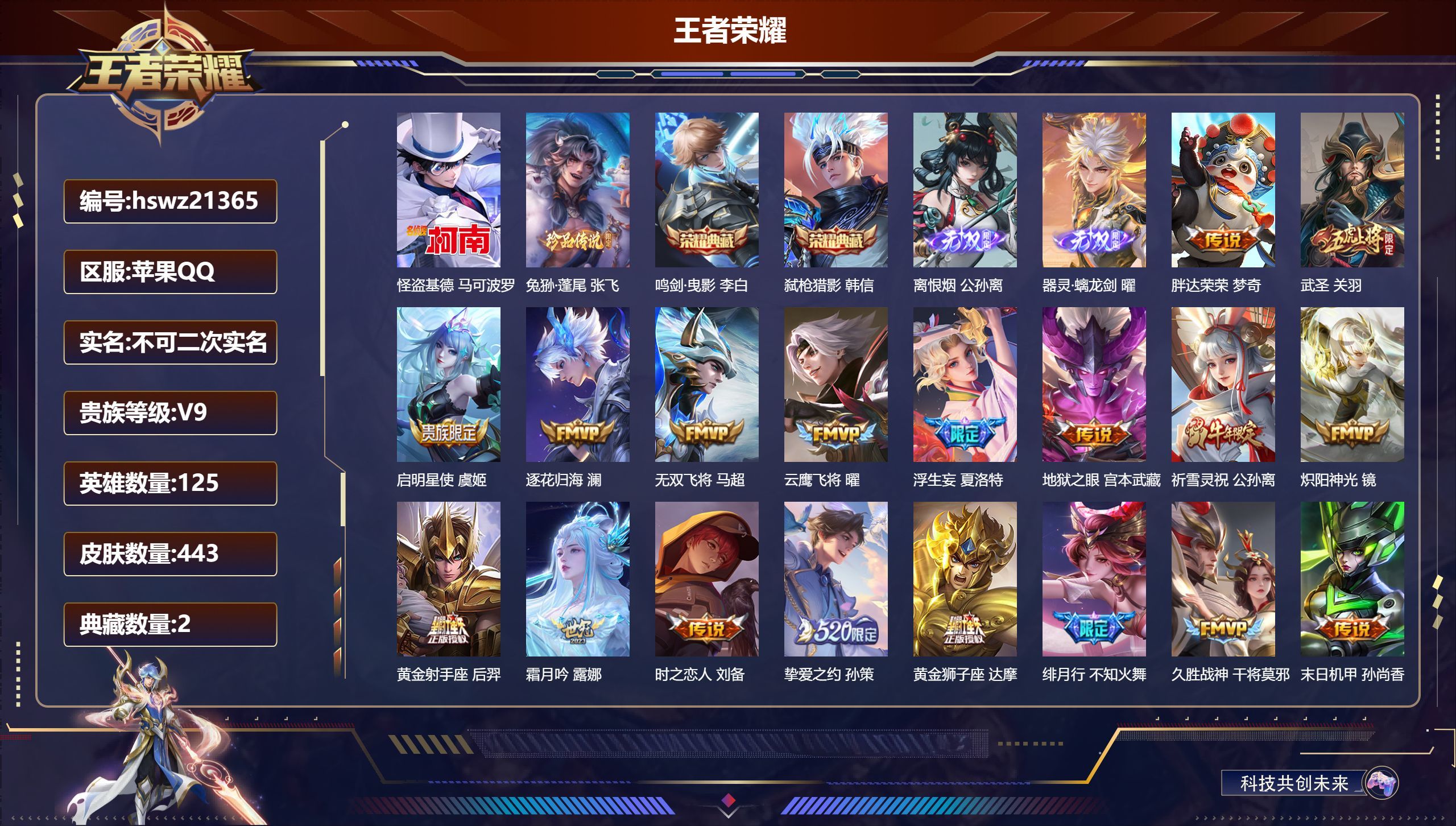 苹果QQ/最强王者/443皮肤/125英雄/2典藏/0珍品无双/2无双/2珍品传说/39传说/141