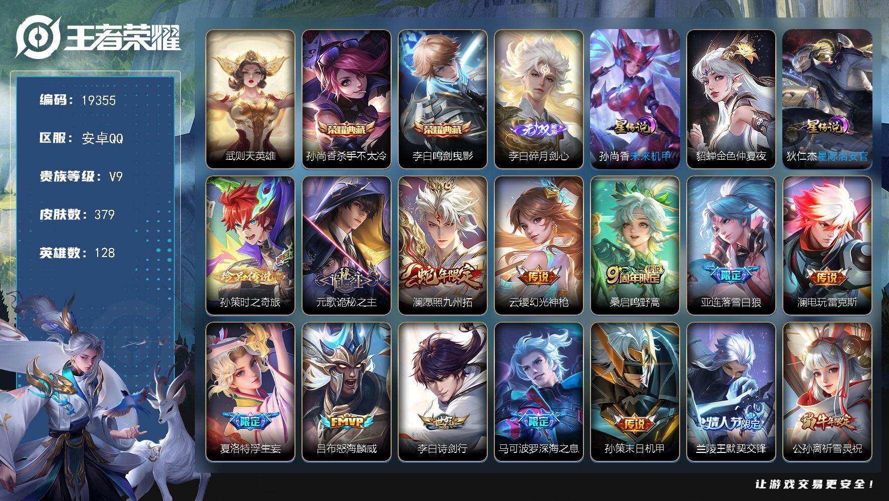 可换绑【V9精品号 李白全皮 发育路42段 金标伽罗 祈雪灵祝 神威 多传说限