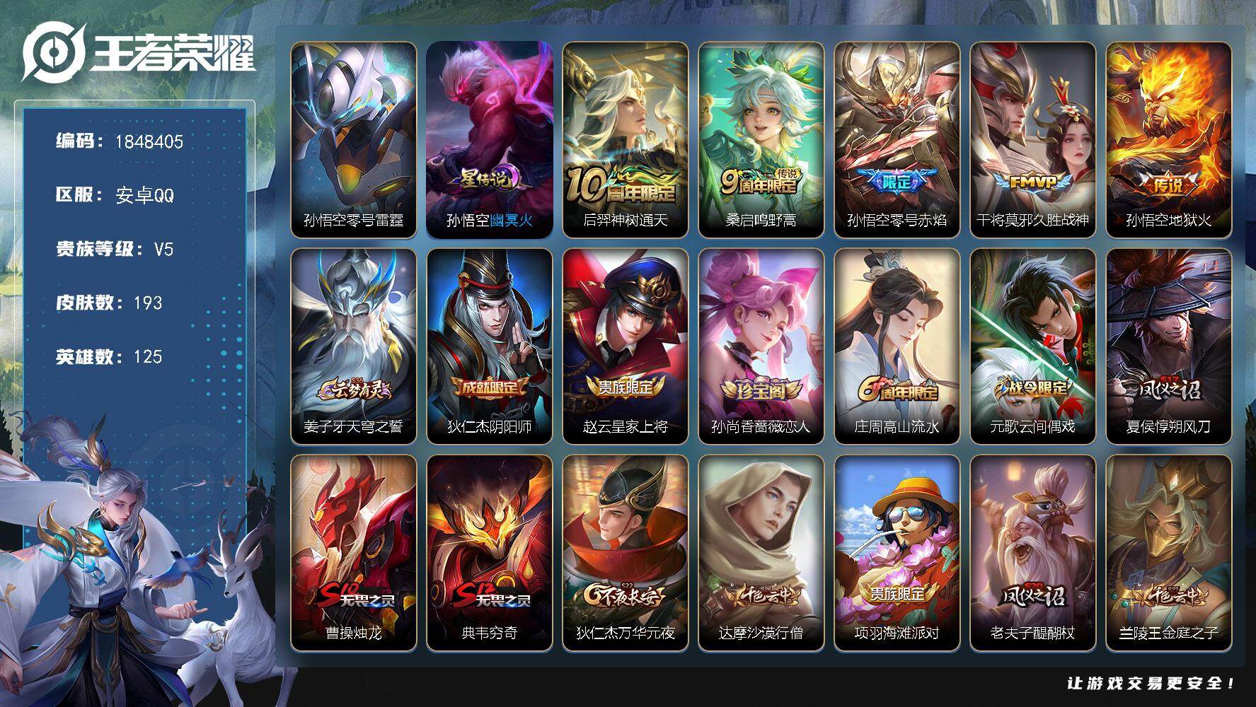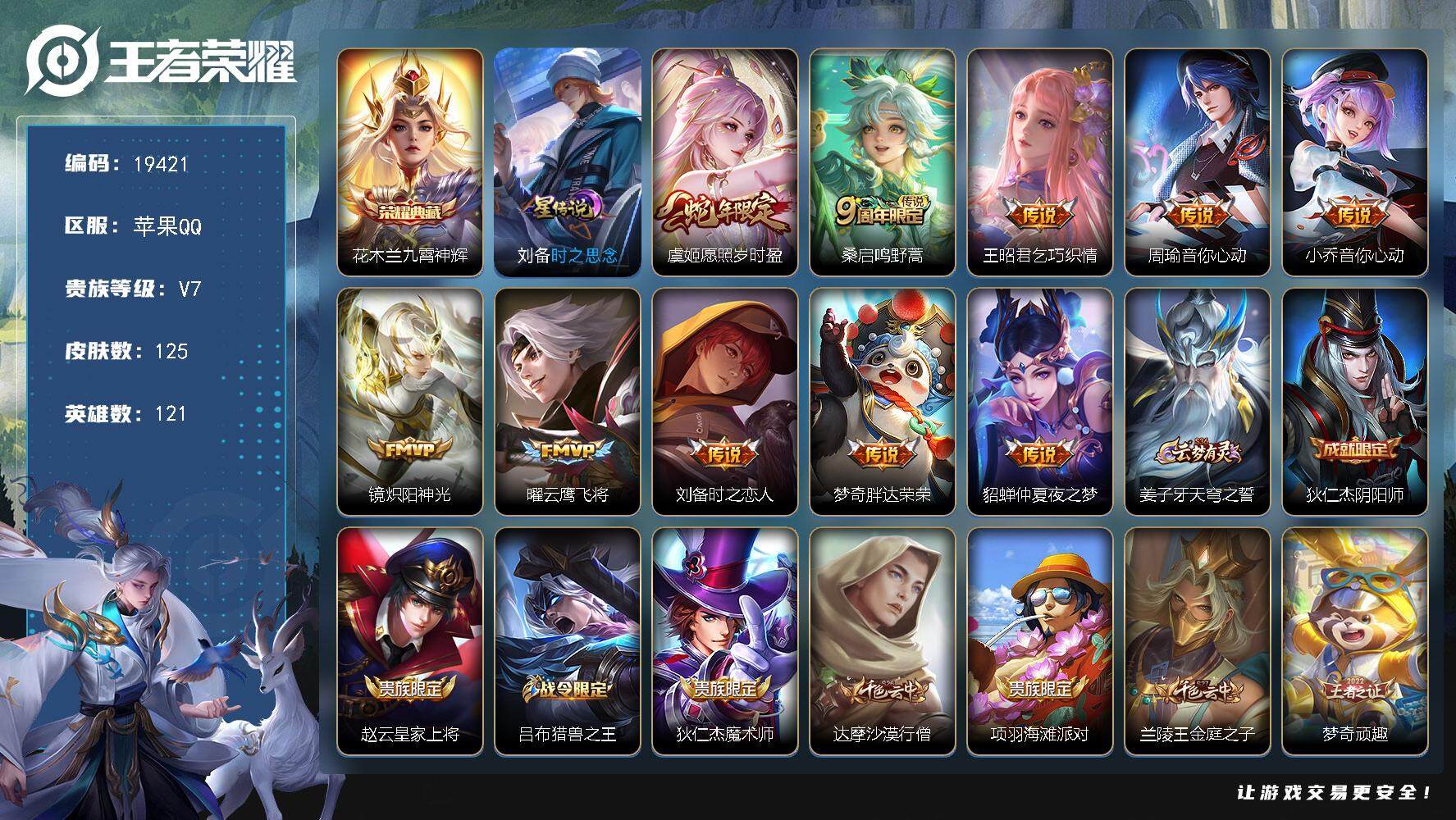 皮肤124 英雄125 荣耀王者 传说4 其他皮肤51-段位高,皮肤多,英雄全,有多个标