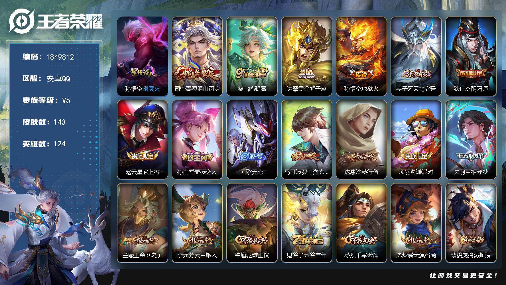 【W4568】安卓Q区-无二次-贵3-52英雄-15皮肤-4传说-4史诗-6限