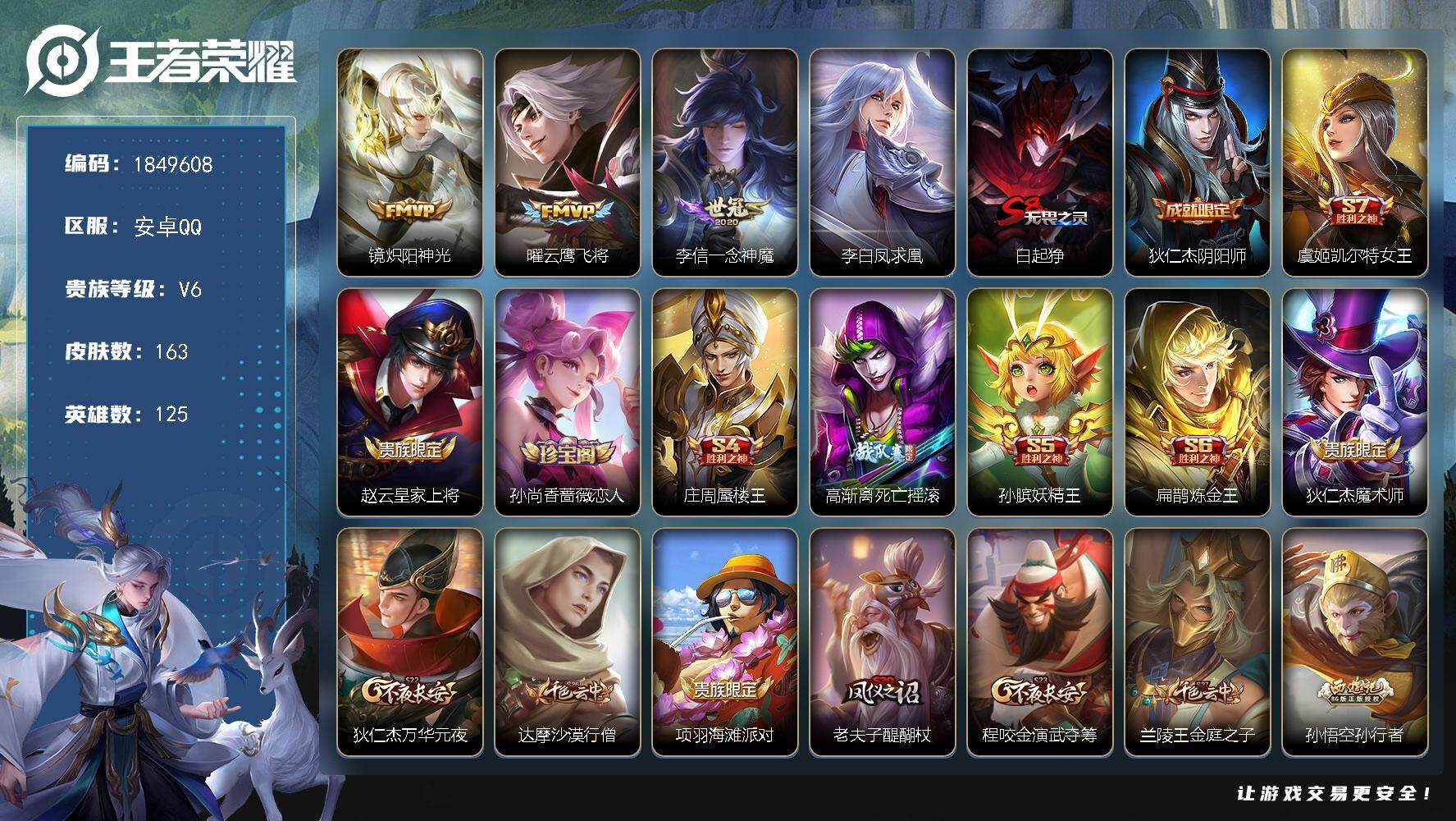 安卓QQ/至尊星耀/348皮肤/125英雄/3典藏/0珍品无双/0无双/1珍品传说/4传说/99史诗