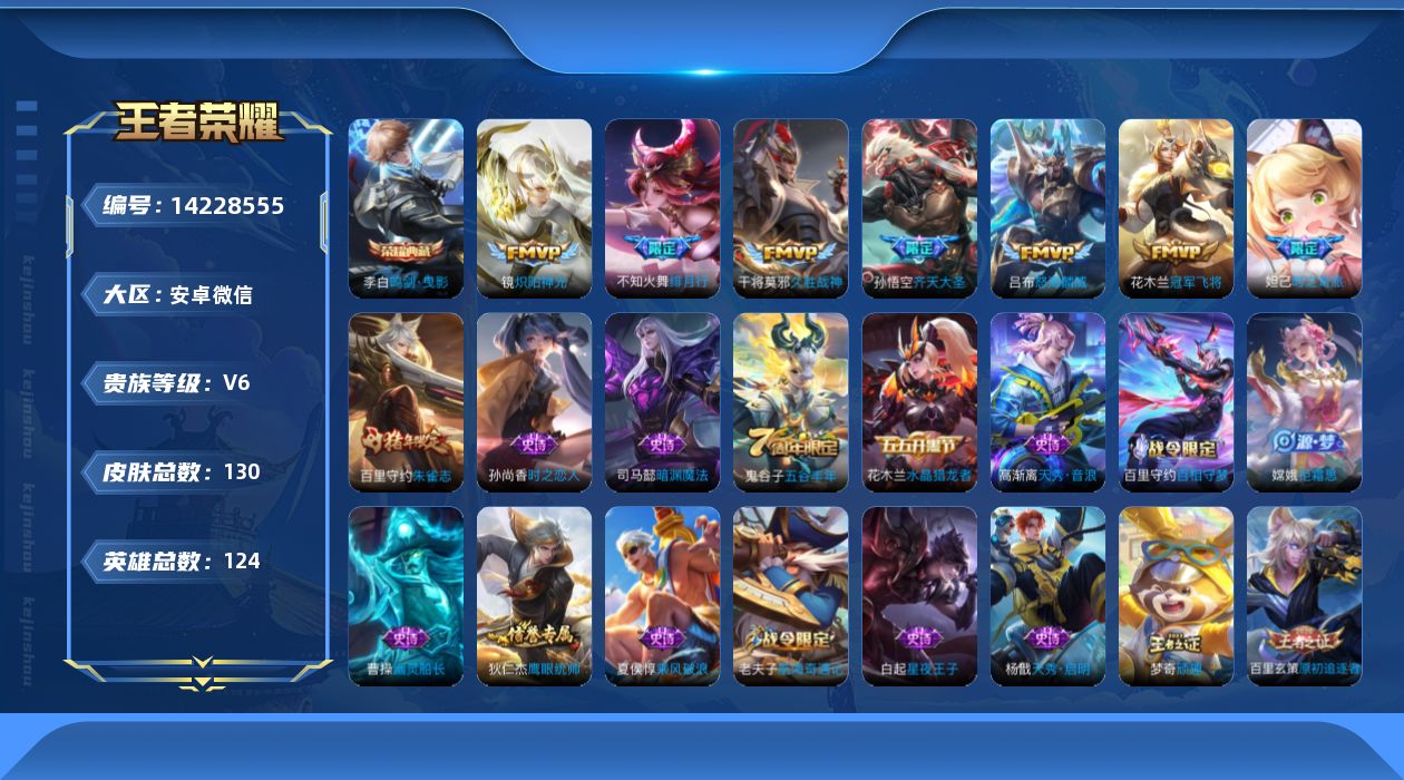 【W4549】安卓Q区-无二次-贵6-126英雄-113皮肤-5传说-25史诗