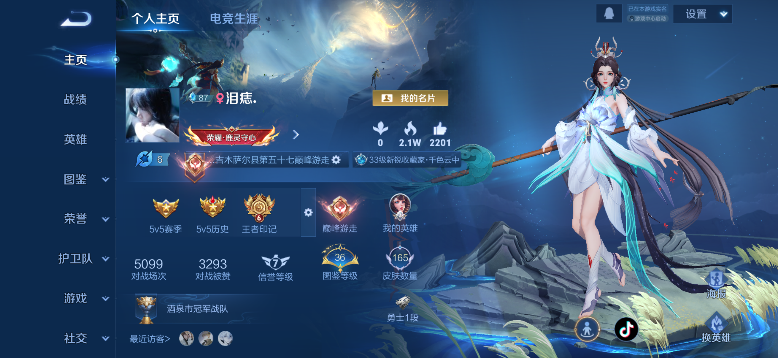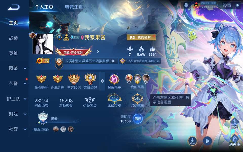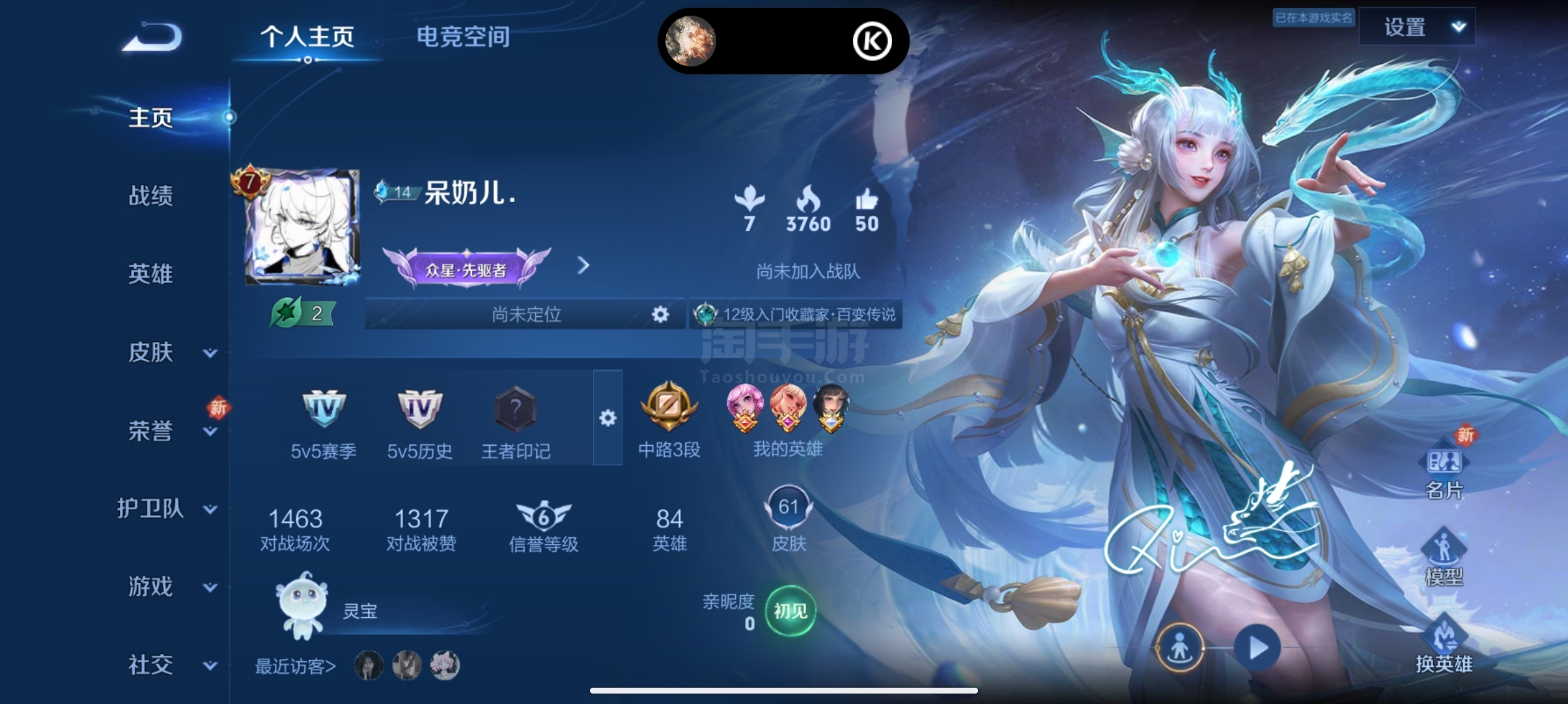 贵族等级: V7 英雄数: 126 皮肤数: 262 星传说: 幽冥之眼 传说