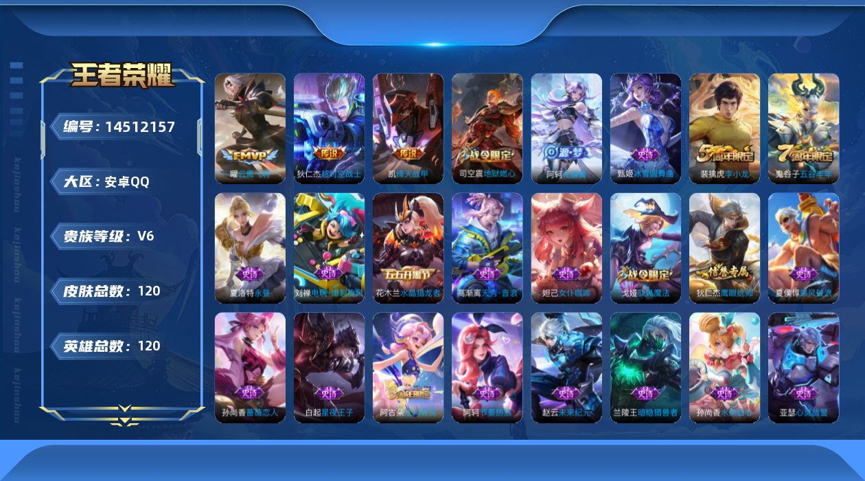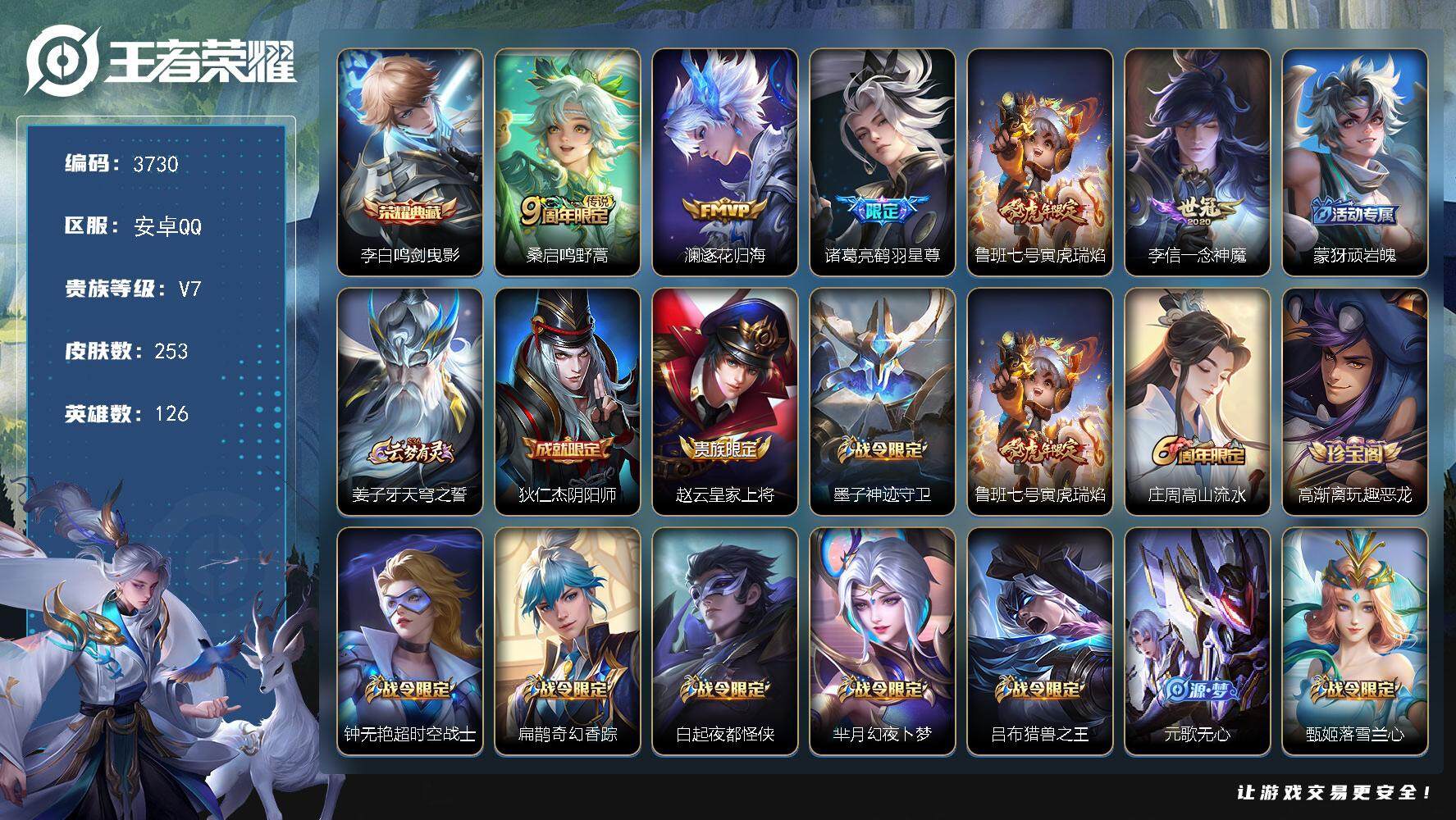 安卓Q-V7-至尊星耀III段位-126英雄-253皮肤-1典藏皮肤-5传说-