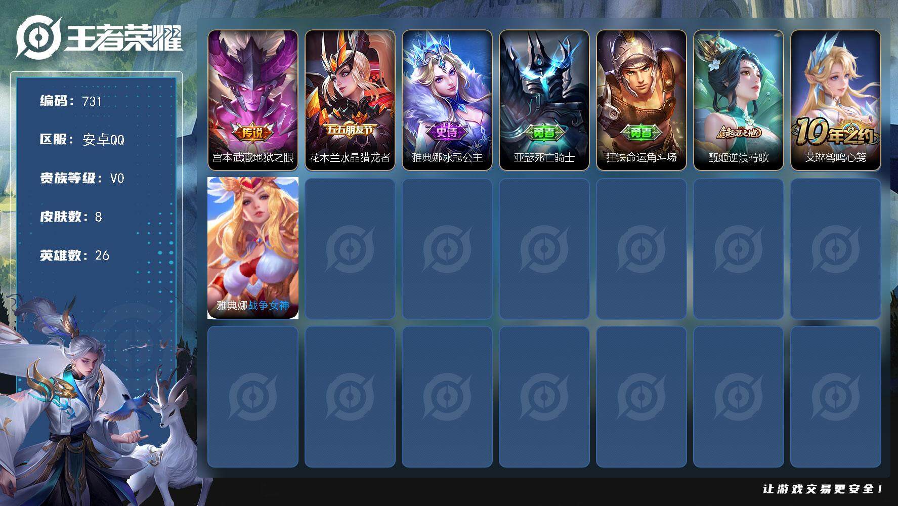 1895123 王者荣耀账号 安卓Q-V0-尊贵铂金II段位-26英雄-8皮肤
