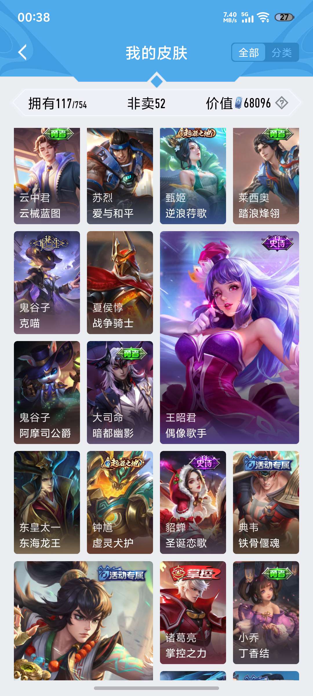 皮肤117 英雄126 荣耀王者 传说5 其他皮肤37-王者荣耀。适合带妹,,,,