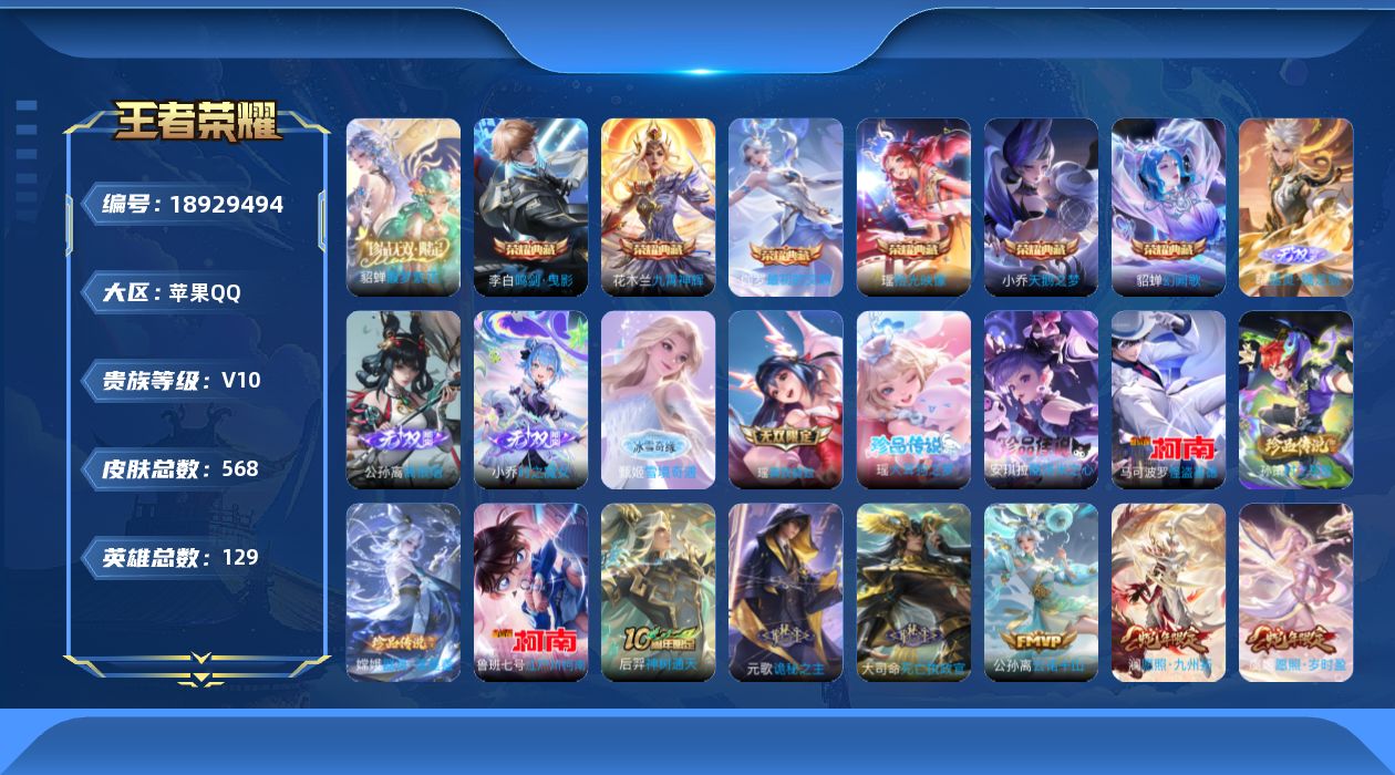 安卓Q-V8-最强王者段位-128英雄-294皮肤-1典藏皮肤-17传说-97史