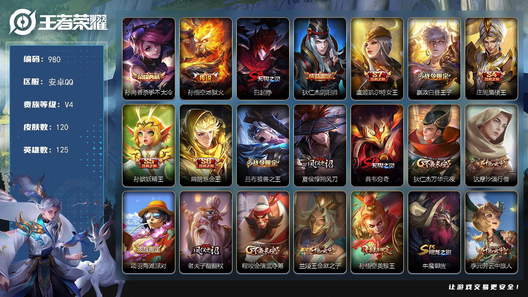 安卓Q-V4-至尊星耀III段位-125英雄-406皮肤-2典藏皮肤-29传说