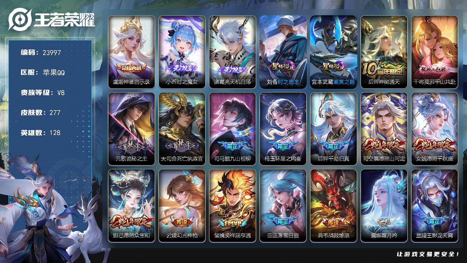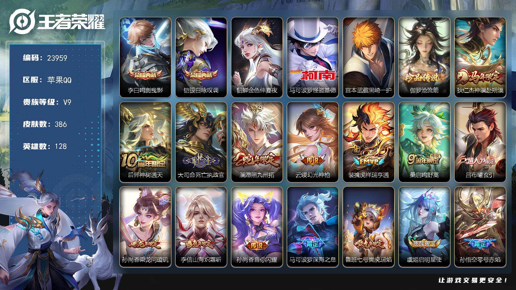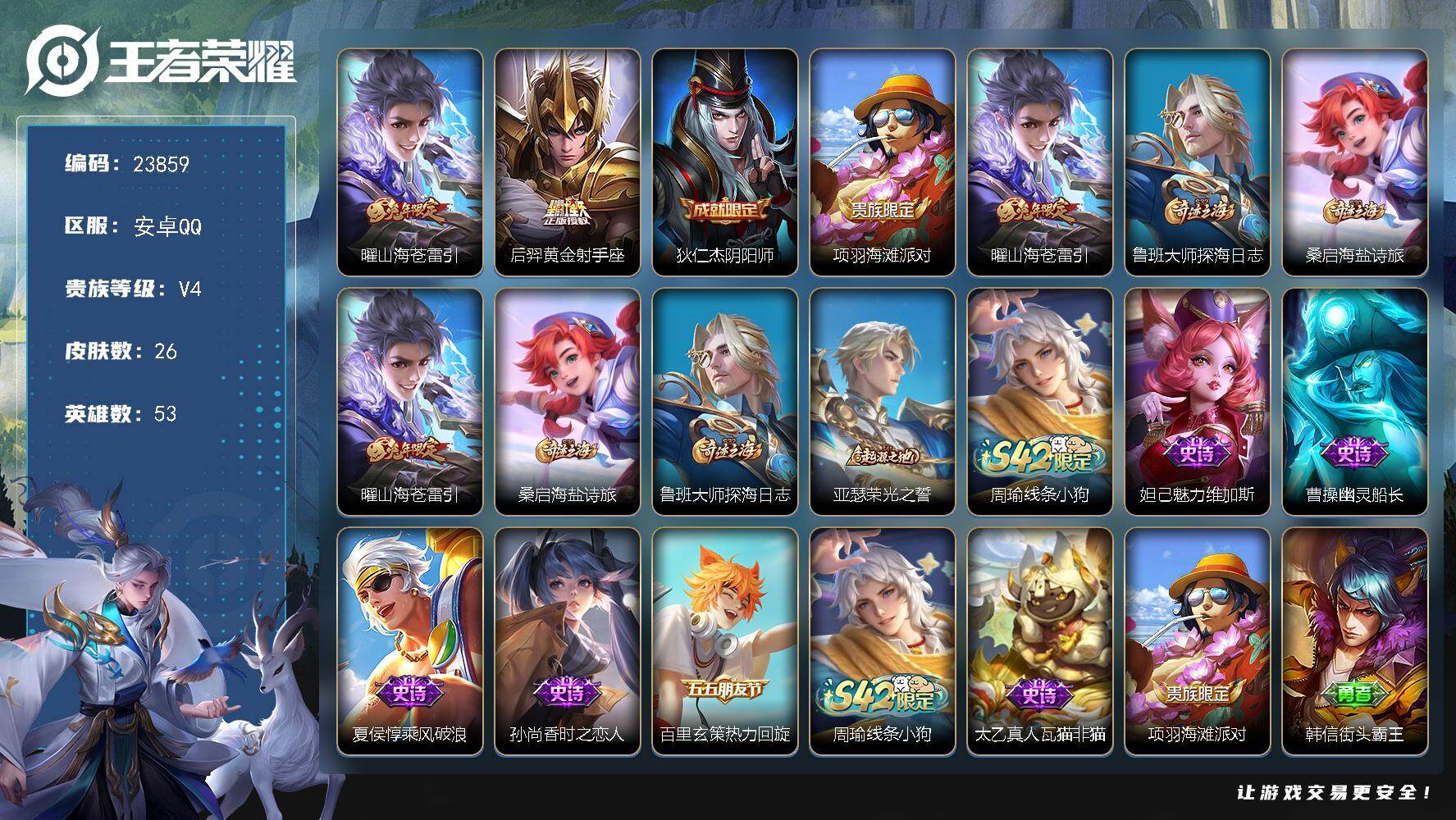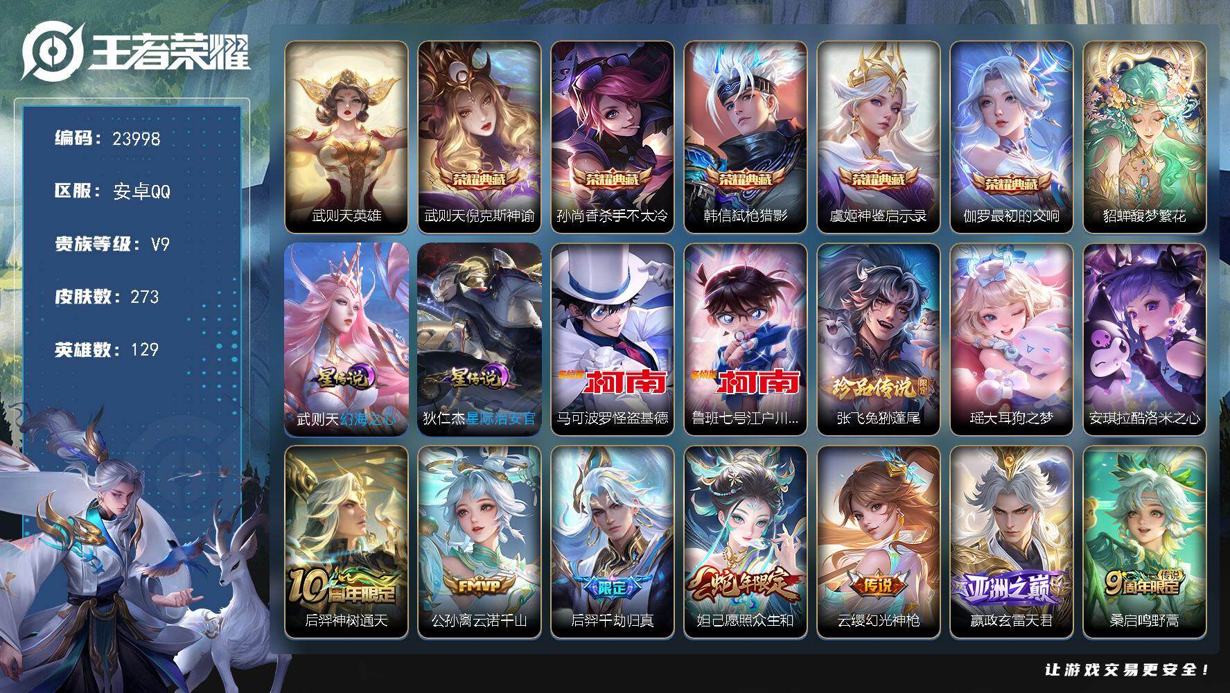 可换绑【店长筛选高质量性价比V9精品号·貂蝉慕夏·6典藏含武则天英雄·5珍品·