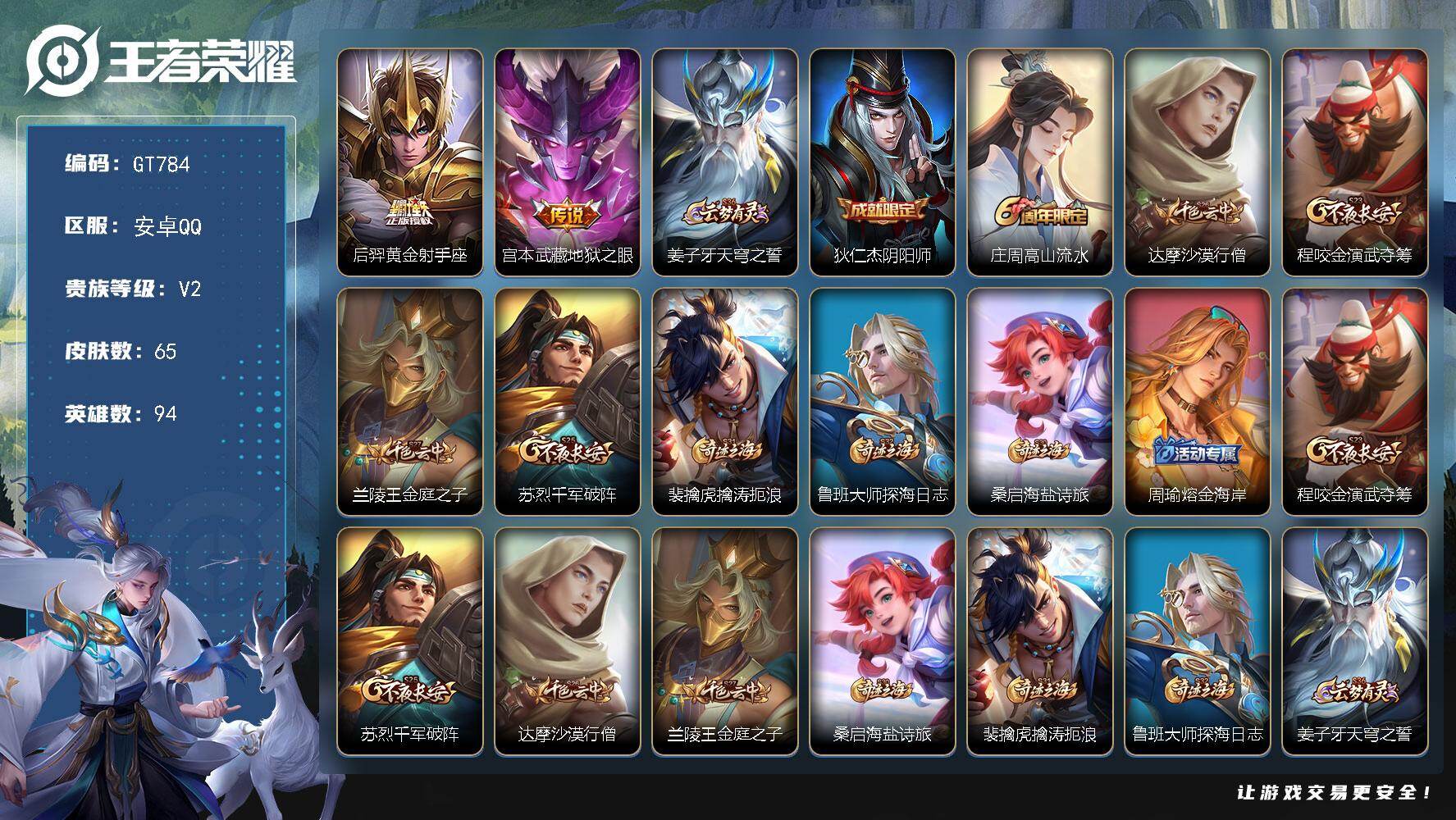 可换绑 2王者印记 五级铭文 60无二次安卓Q-V2-65皮肤-2传说-14史诗