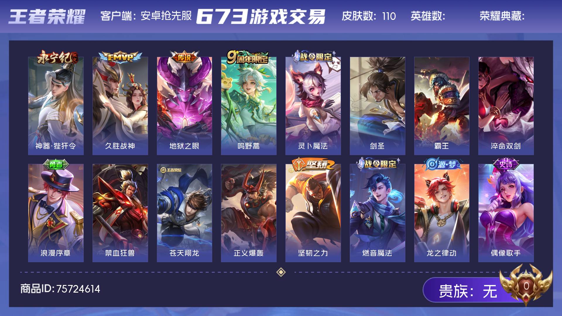 可二次 凤求凰185皮肤1水晶5传说 -126英雄-