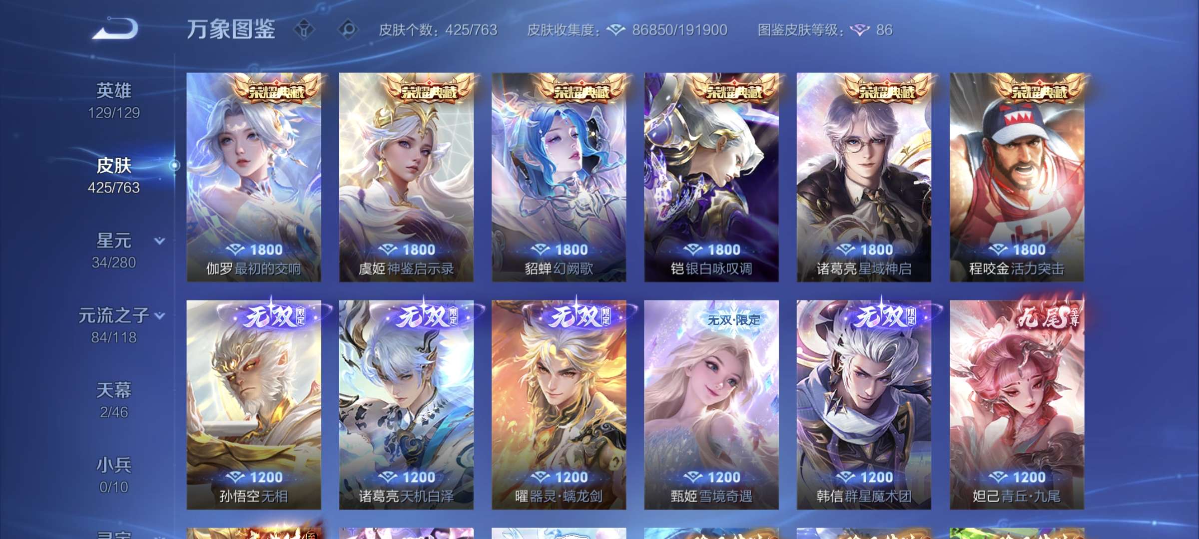 一典藏俩星传说六传说高质量皮肤一堆
