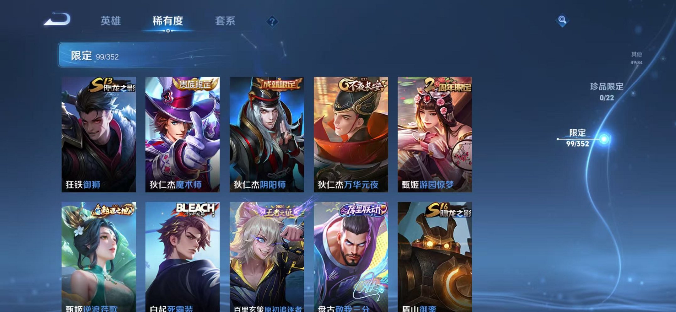 安卓QQ 皮肤222 英雄127 典藏1 无双2 传说9 其他皮肤100 无双王者-