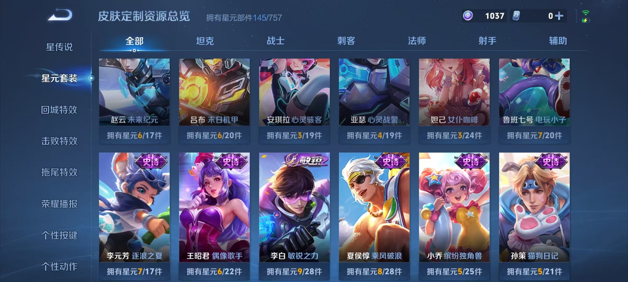 安卓QQ 皮肤323 英雄123 典藏1 珍品传说1 传说8 其他皮肤132 至尊星耀-