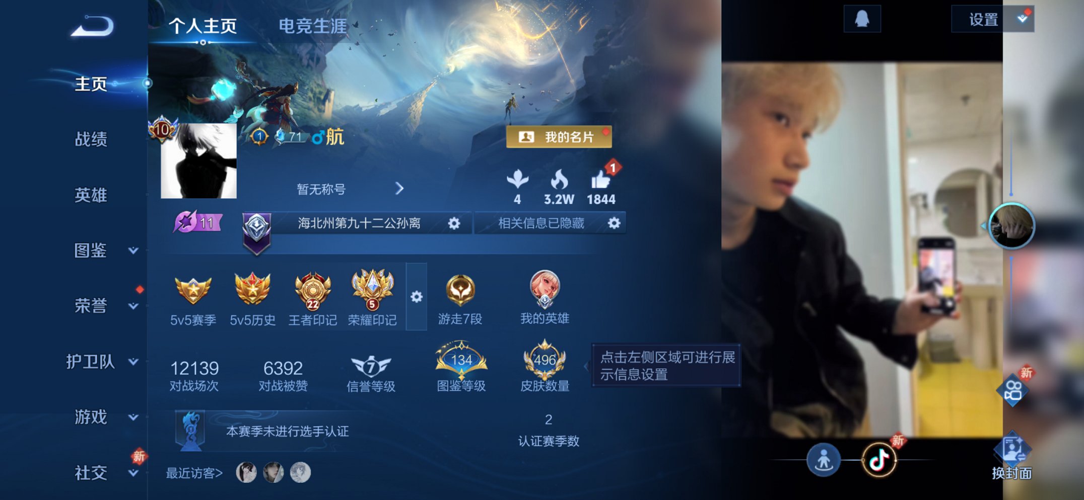 可二次 3金标万战韩信猴子打野52段1无双15传说209皮肤