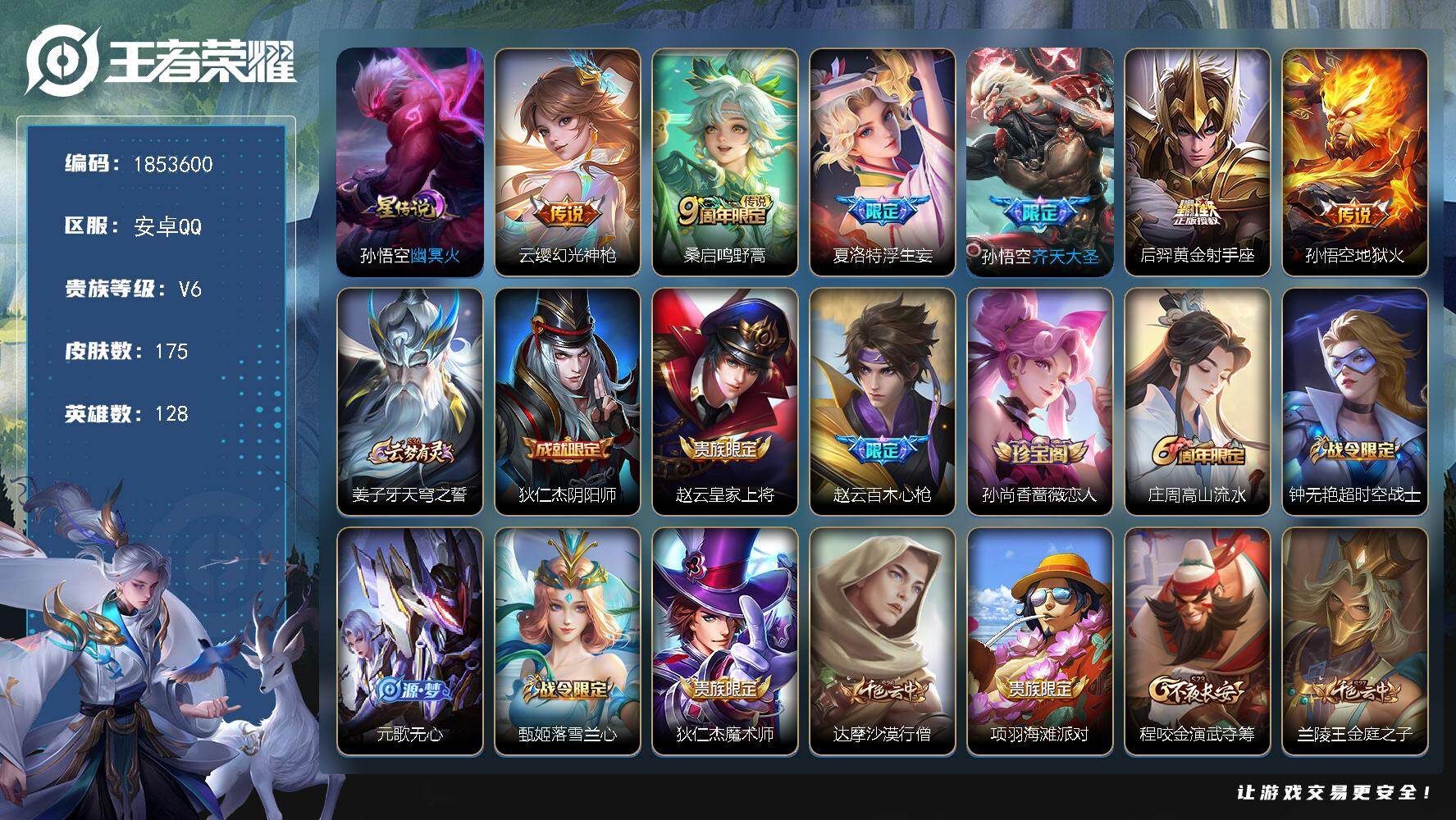 安卓Q-V7-至尊星耀II段位-127英雄-218皮肤-4传说-57史诗【传说