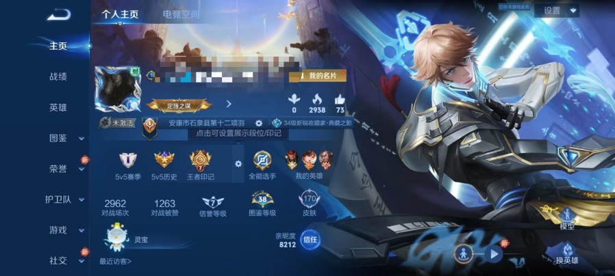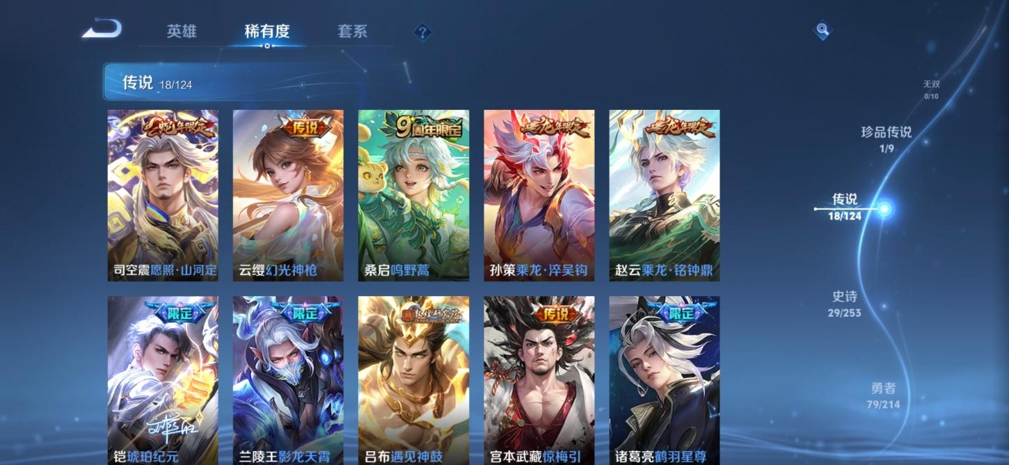 安卓QQ/最强王者/209皮肤/127英雄/1典藏/0珍品无双/1无双/3珍品传说/9传说/63史诗