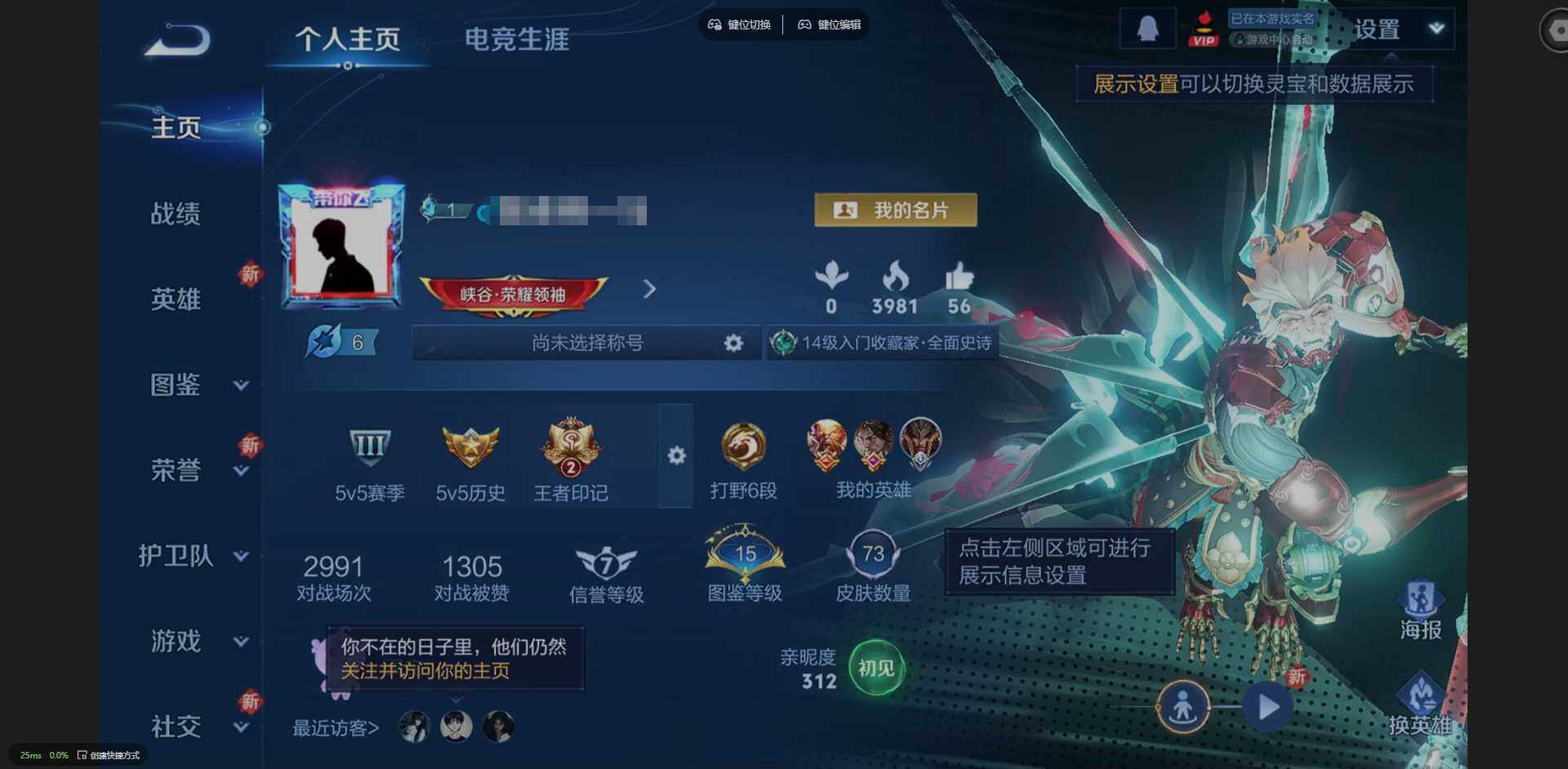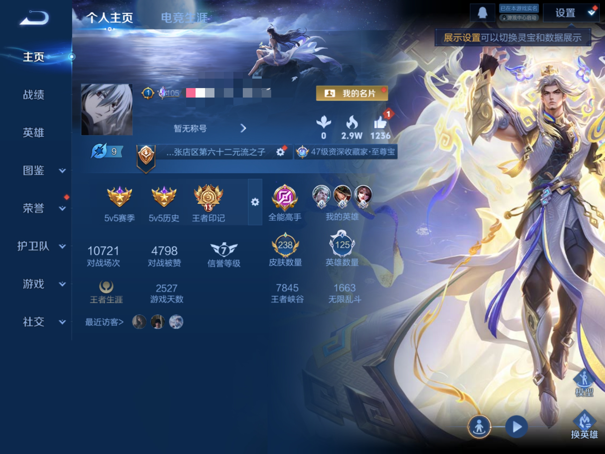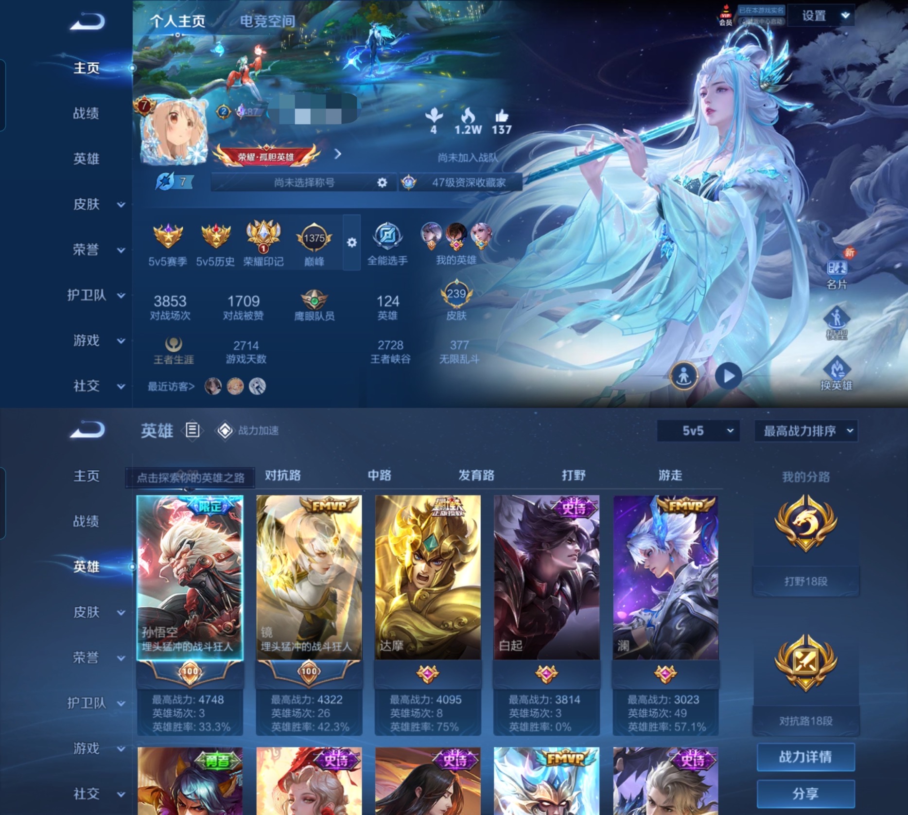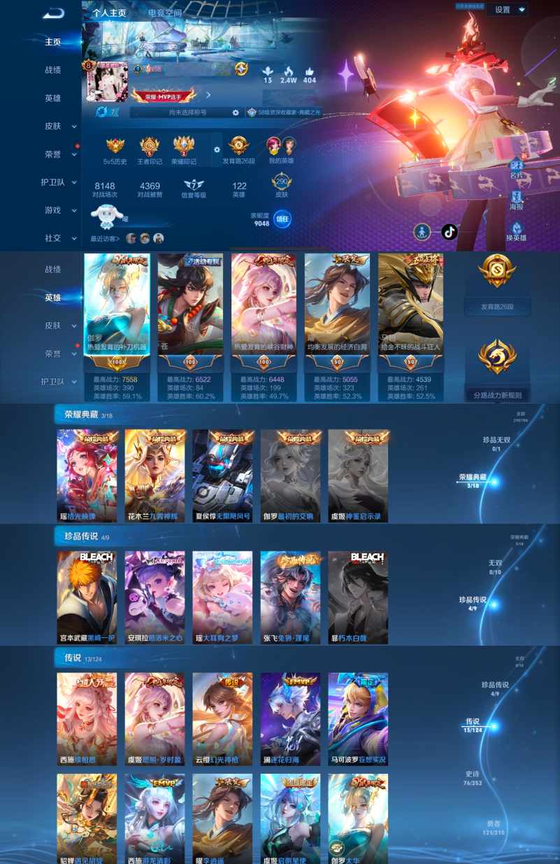 实名: 可修改 贵族等级: V6 英雄数: 125 皮肤数: 174 传说皮: