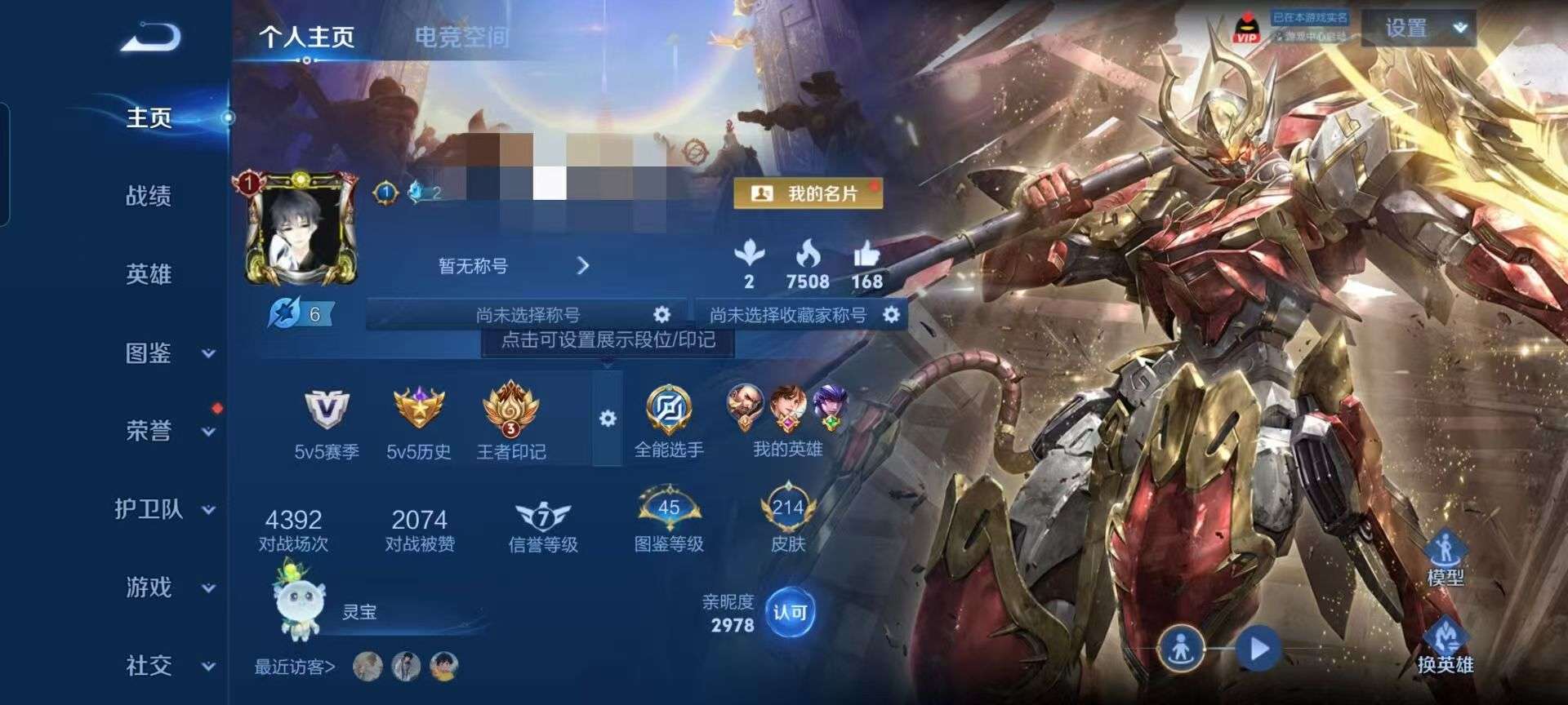 实名: 可修改 贵族等级: V6 英雄数: 122 皮肤数: 149 传说皮: