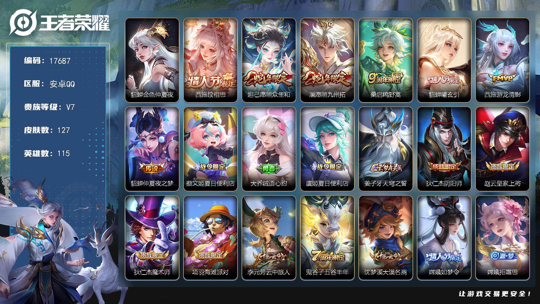 实名: 可修改 贵族等级: V5 英雄数: 114 皮肤数: 119 限定皮: