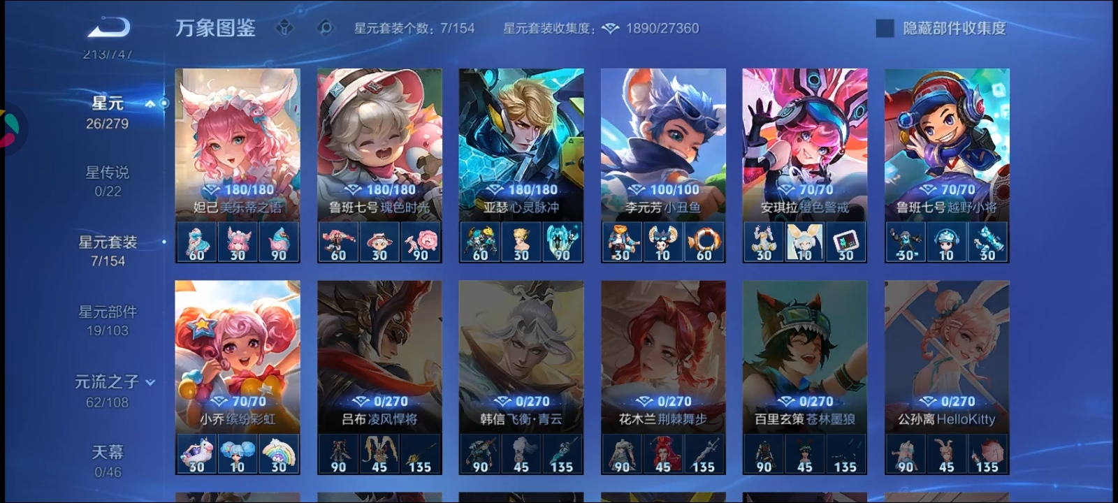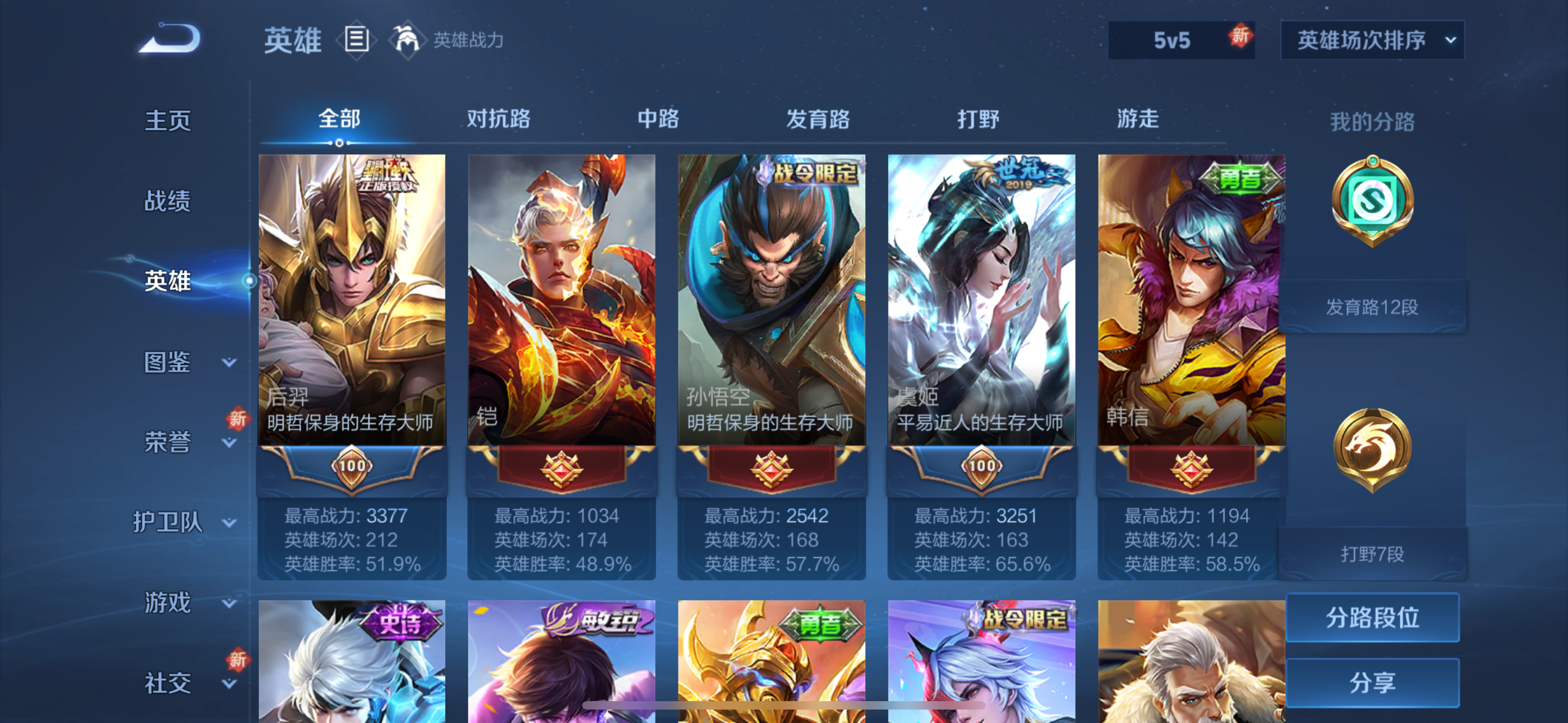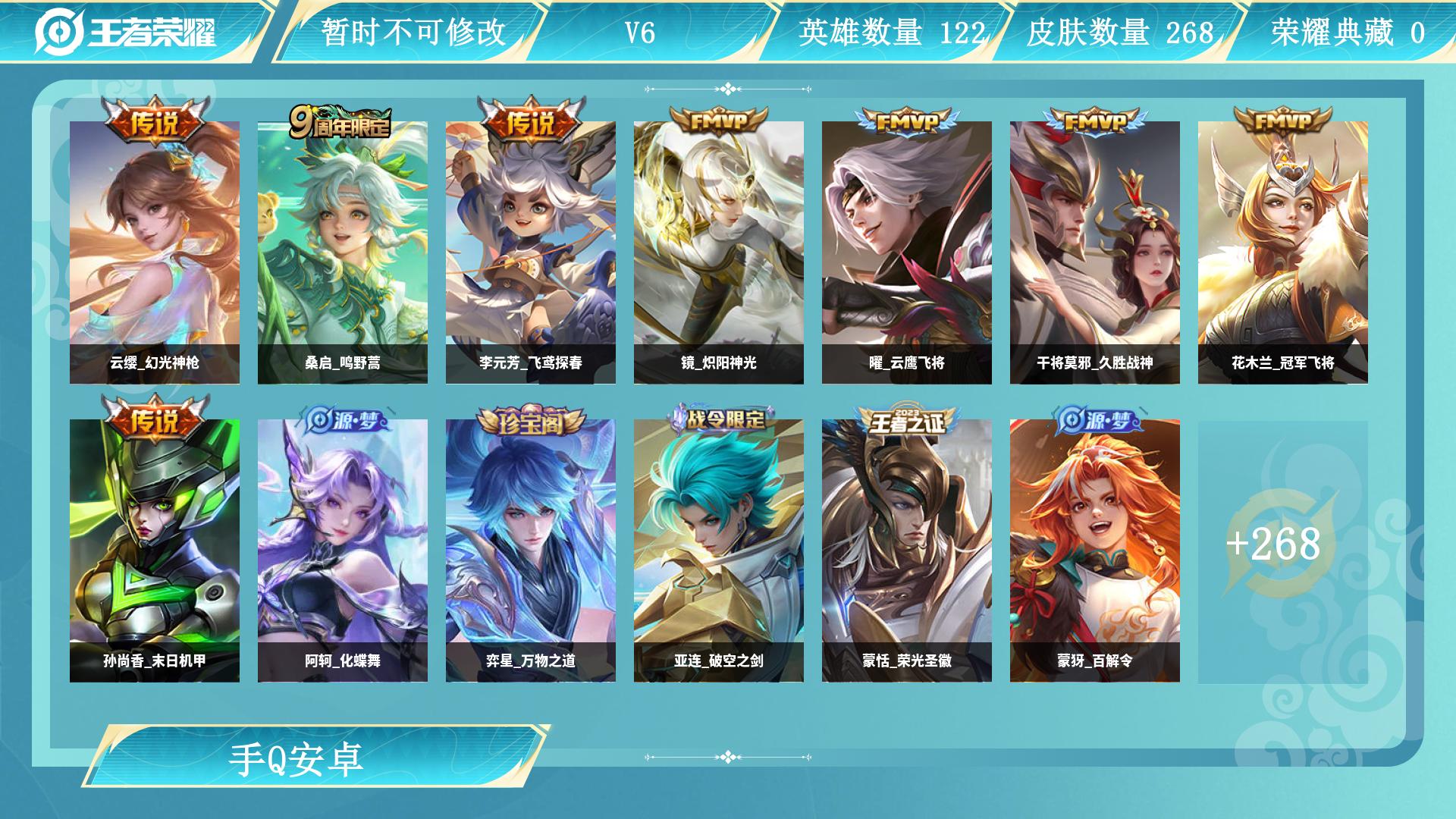安卓Q-V6-至尊星耀I段位-127英雄-269皮肤-4传说-53史诗【英雄