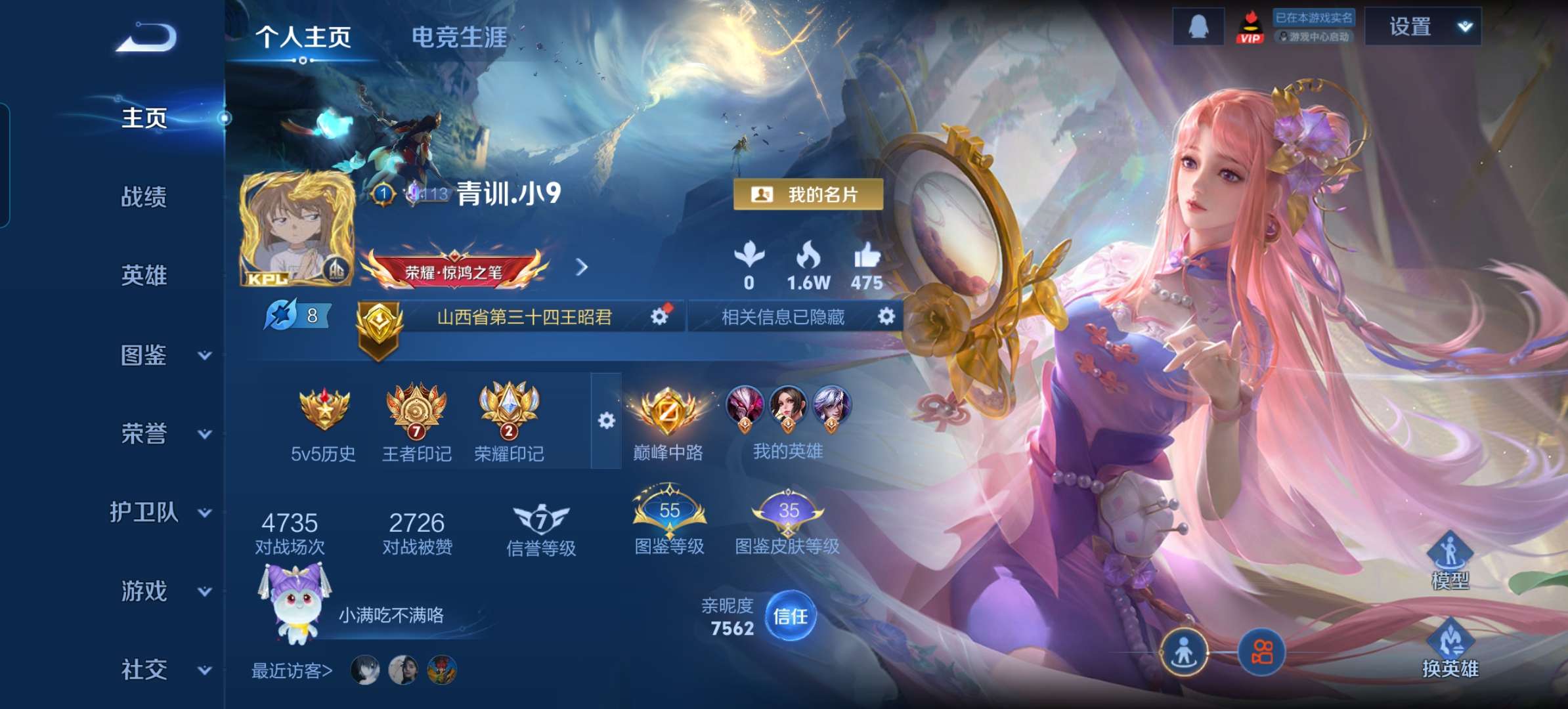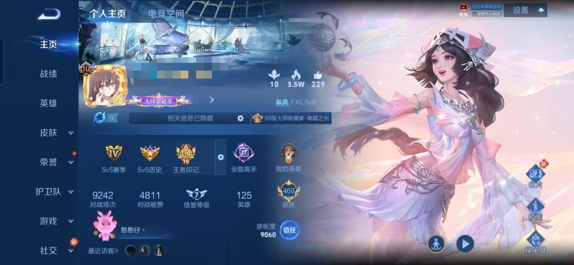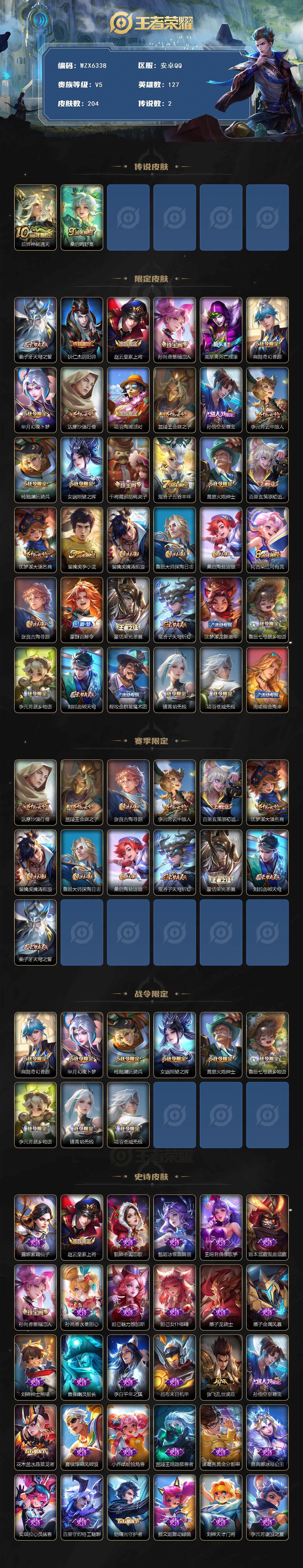 实名: 可修改 贵族等级: V7 英雄数: 117 皮肤数: 97 传说皮: