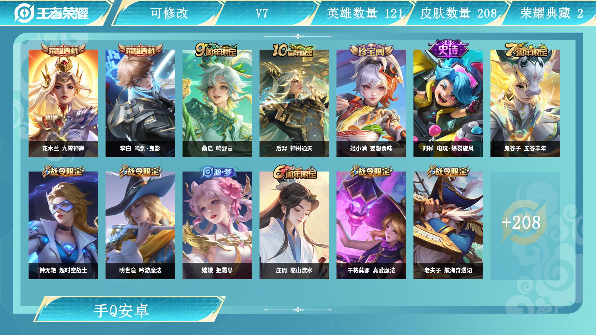 安卓Q-V0-荣耀黄金II段位-126英雄-212皮肤-1典藏皮肤-7传说-5
