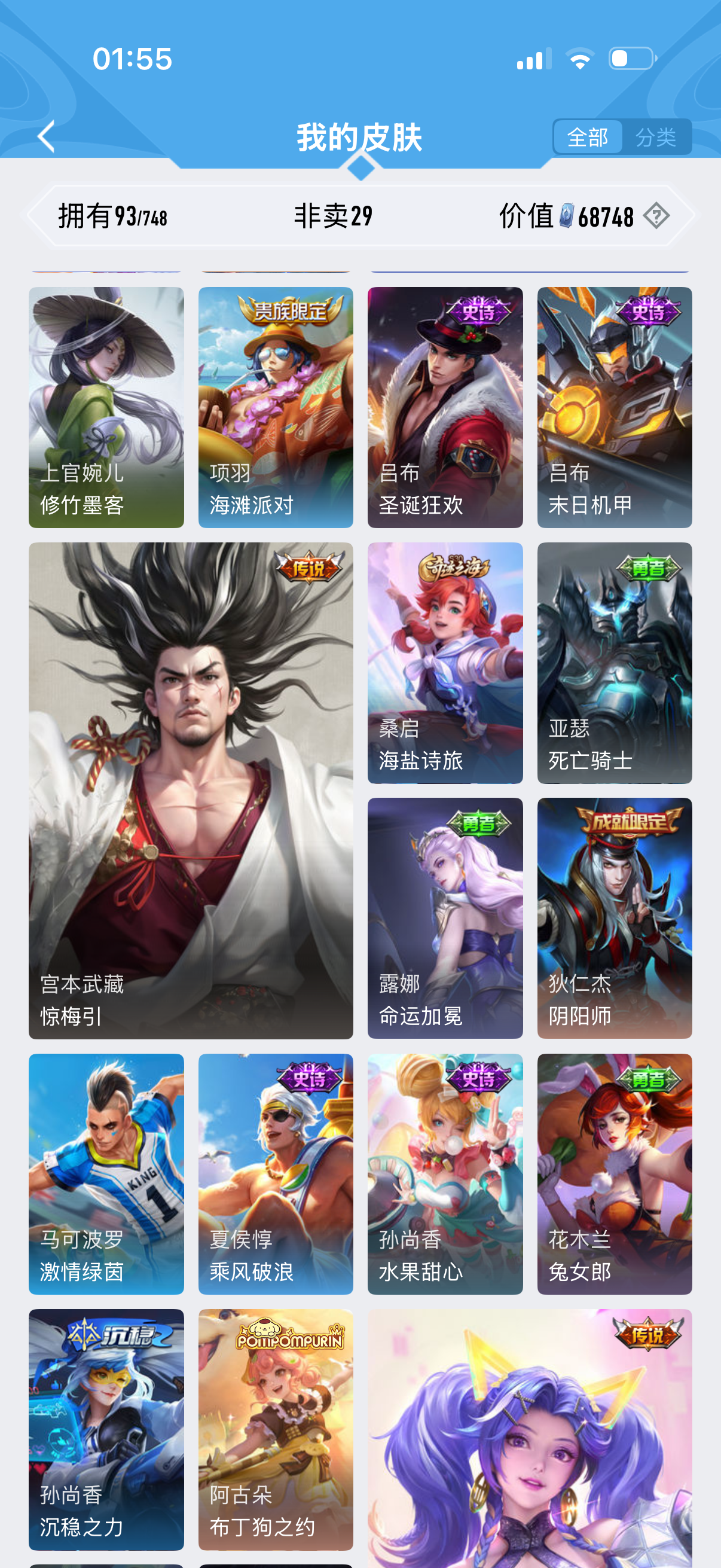 安卓QQ-6典藏-71传说-2无双-472皮肤-128英雄-非凡王者