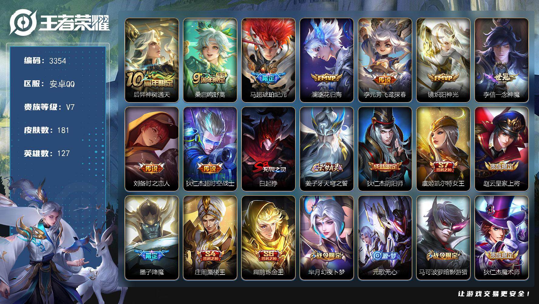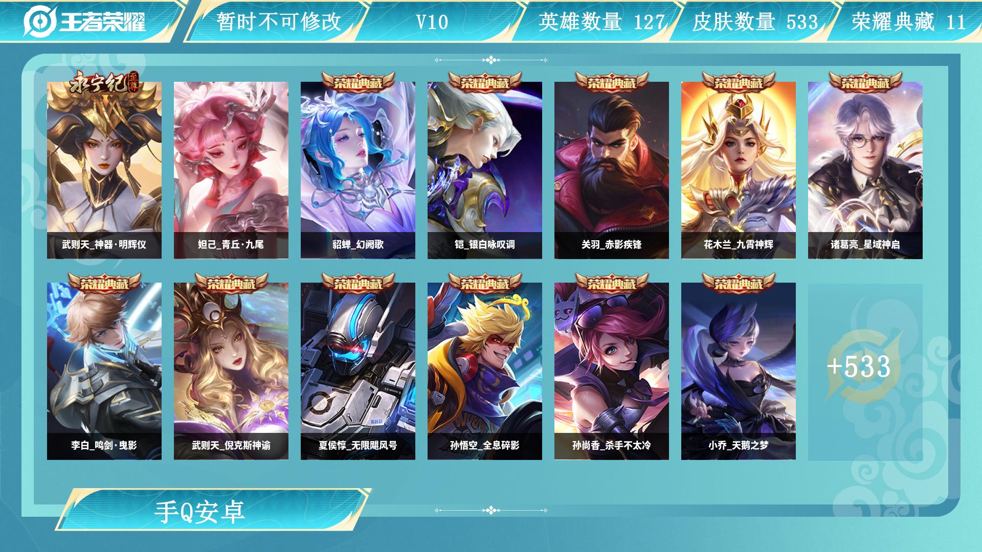 安卓QQ-1典藏-18传说-300皮肤-127英雄-至尊星耀