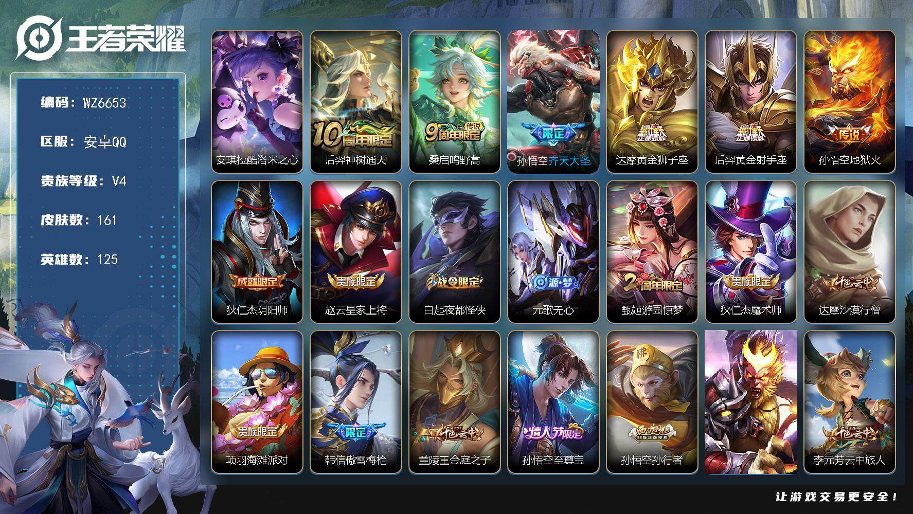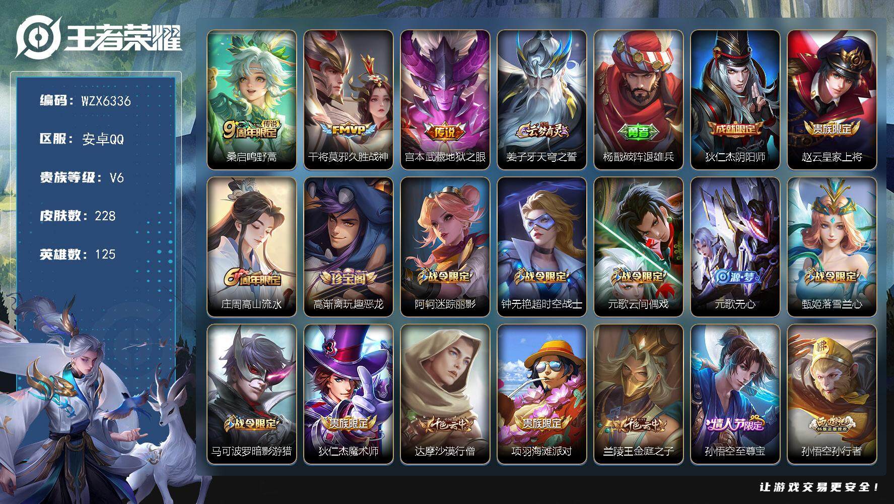 安卓QQ-1传说-155皮肤-125英雄-无双王者-至尊宝.白虎志.飞衡.冰封战神