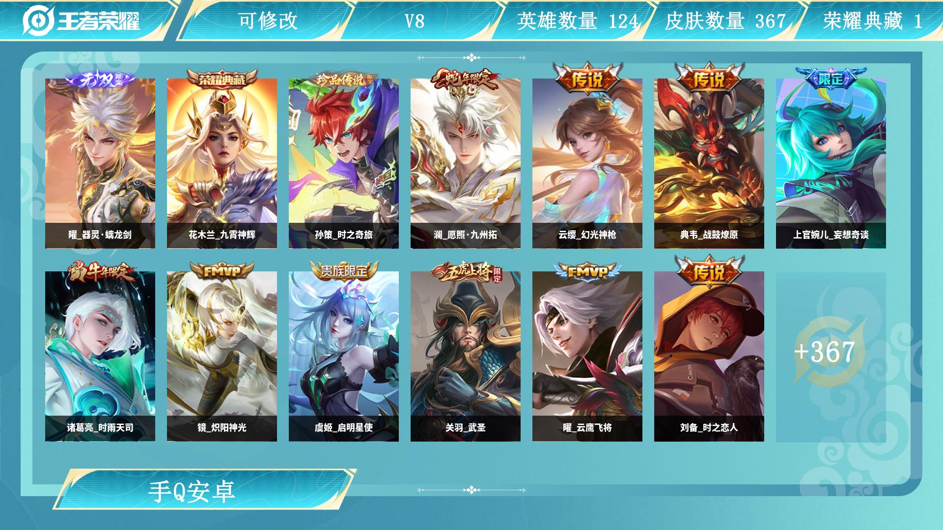 安卓QQ-9传说-216皮肤-122英雄-至尊星耀