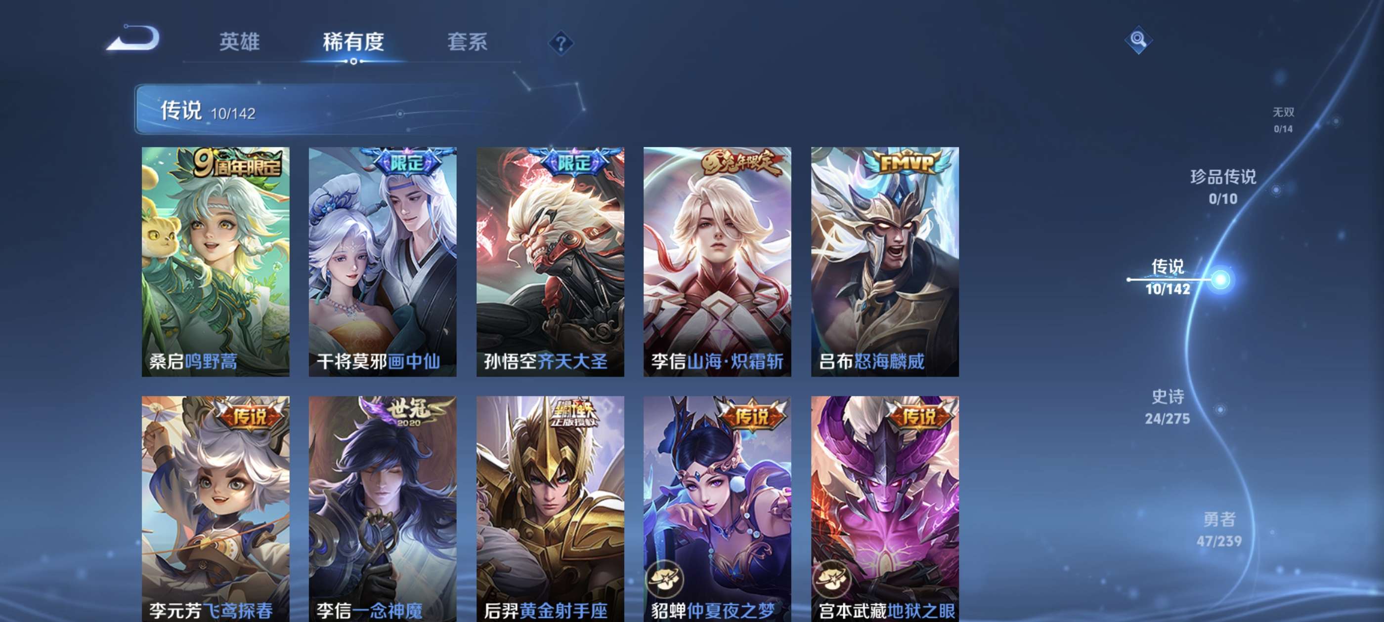 贵族7-145皮1典藏4传说1无双1珍品传说 安卓手Q275区145皮1