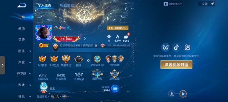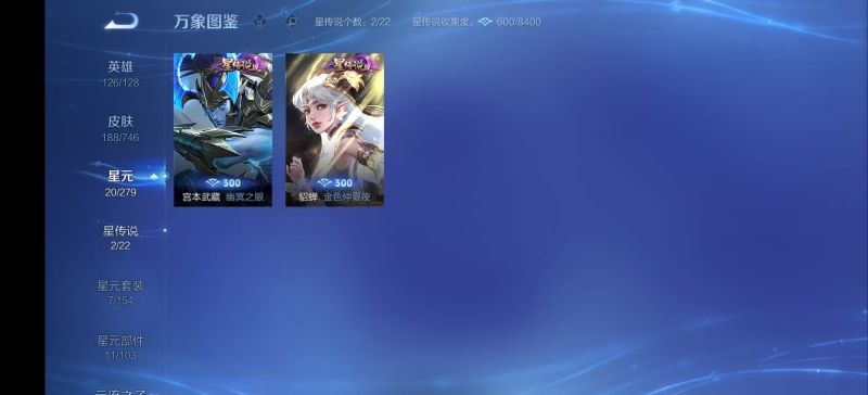 安卓QQ/至尊星耀/183皮肤/123英雄/1典藏/0珍品无双/2无双/2珍品传说/25传说/61史