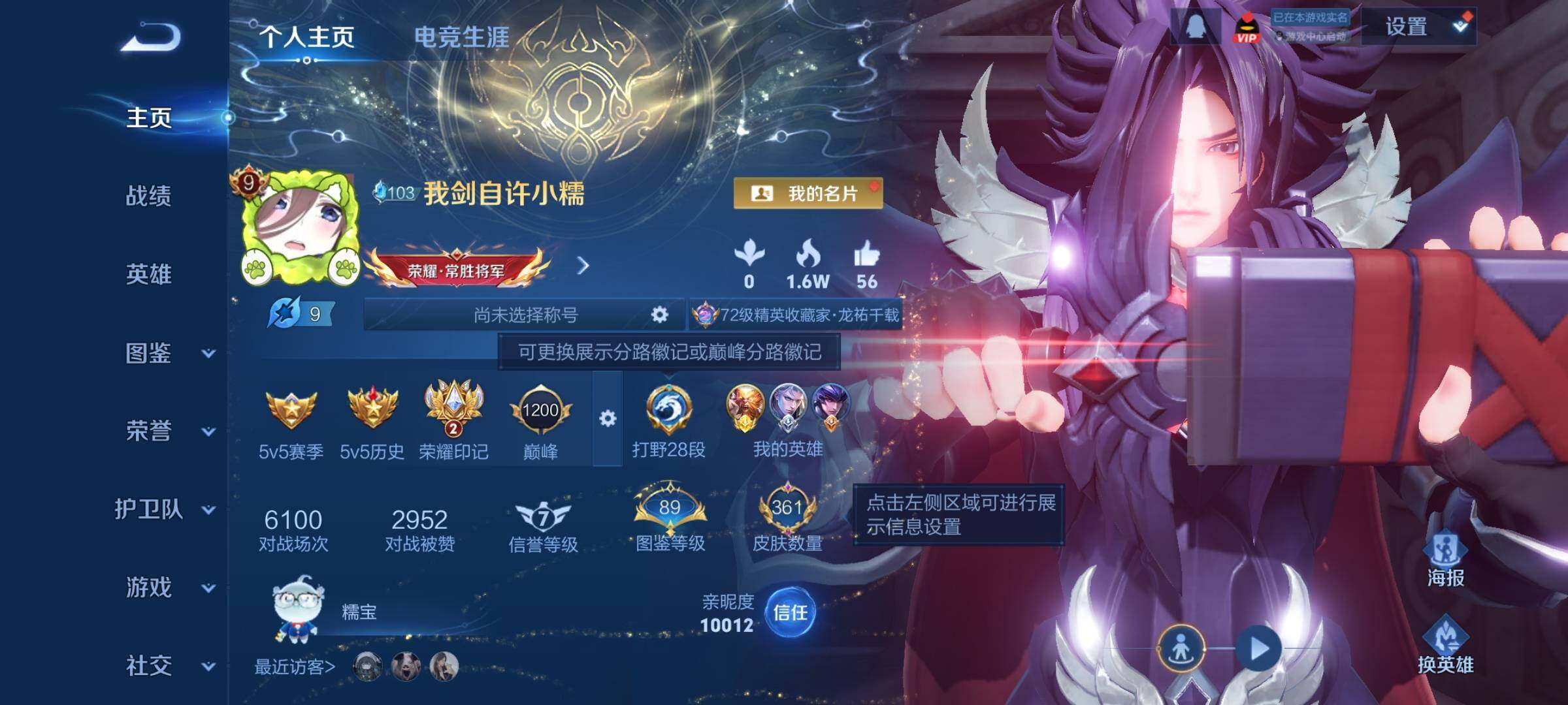 安卓QQ/至尊星耀/203皮肤/118英雄/3典藏/0珍品无双/2无双/1珍品传说/16传说/56史