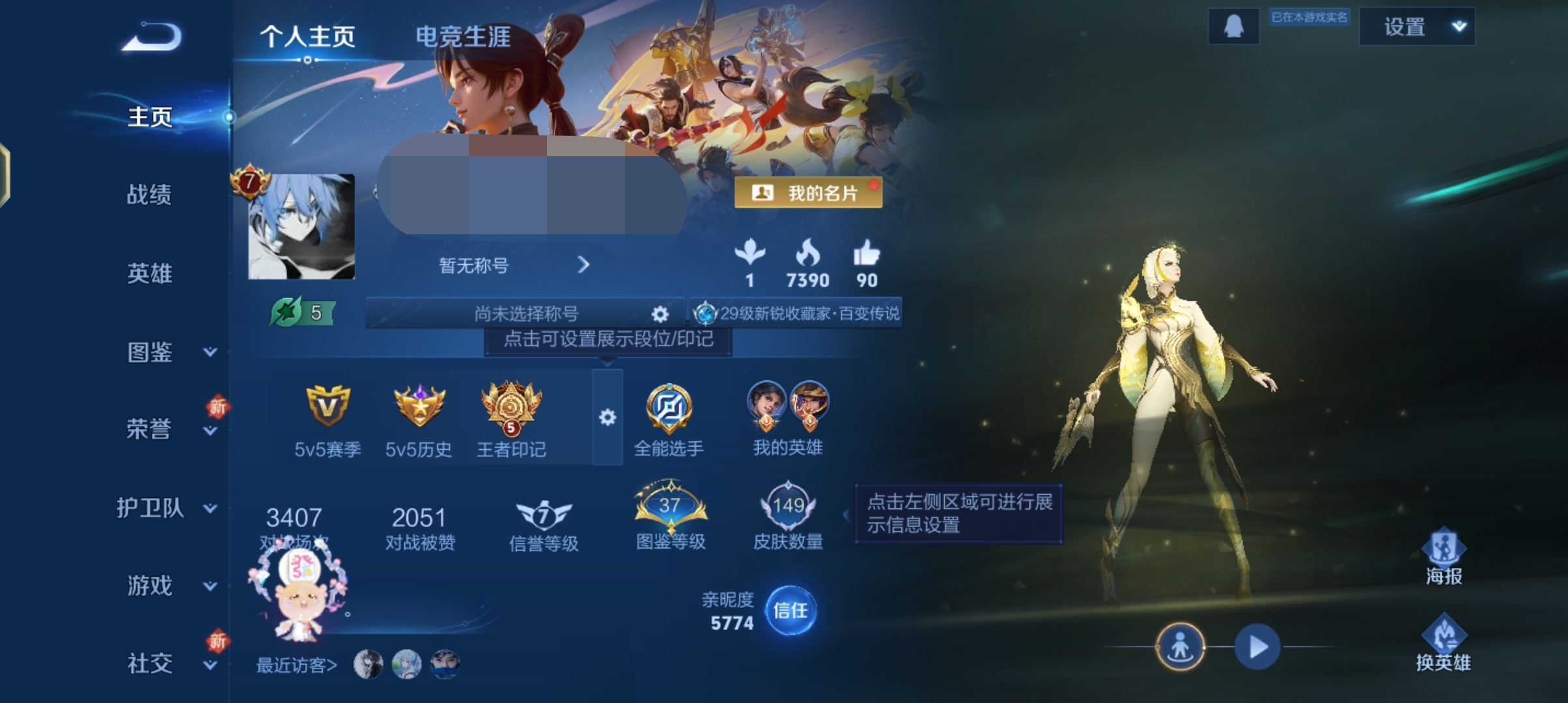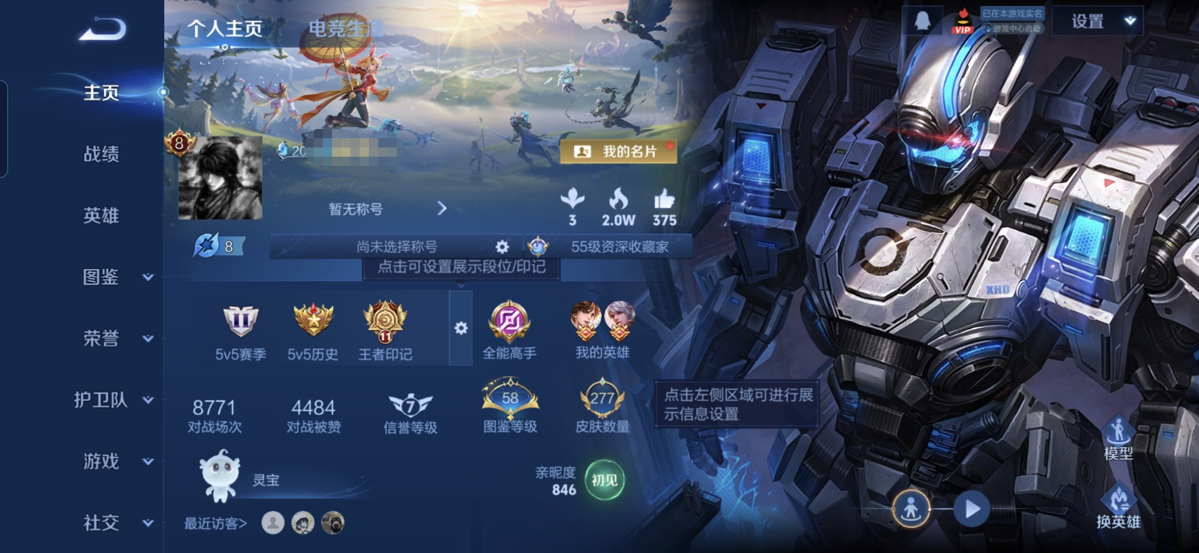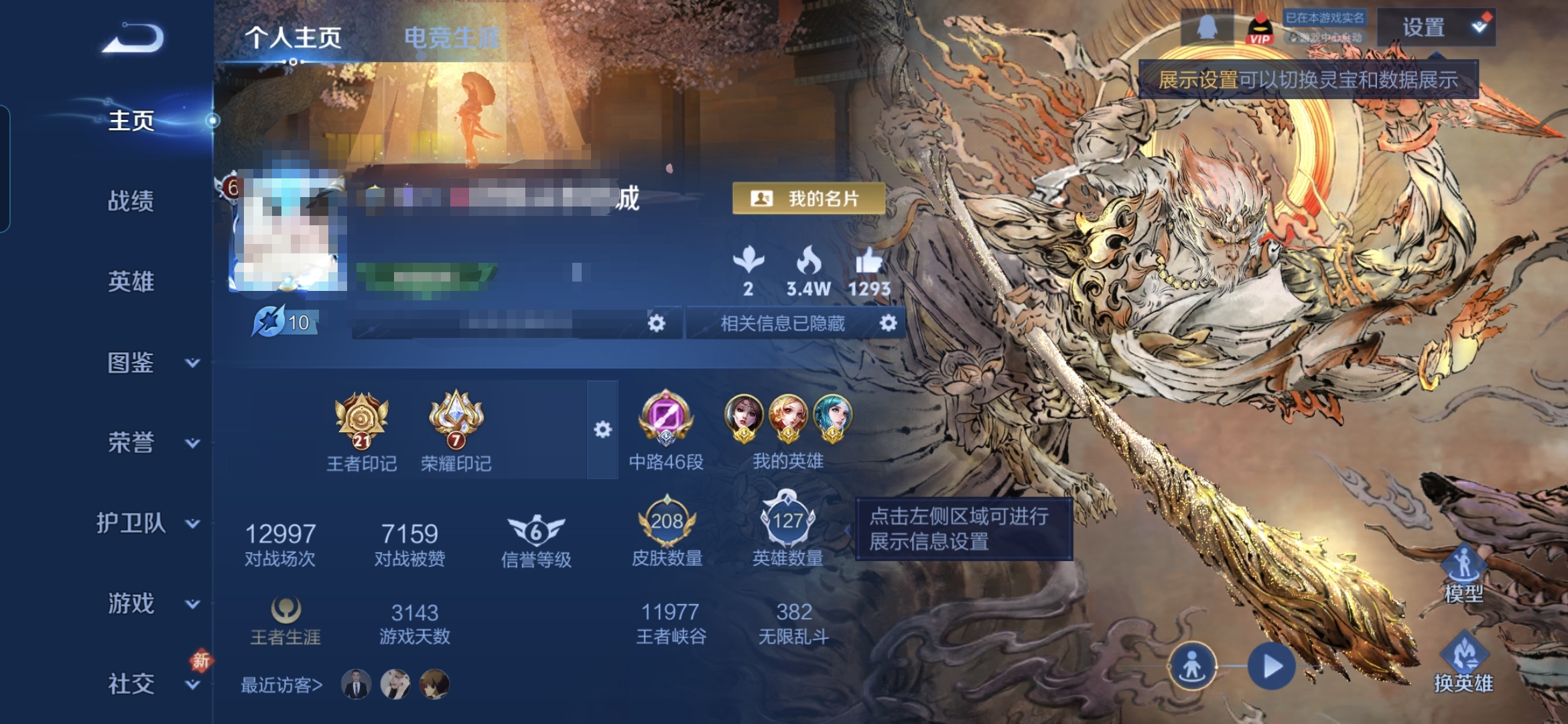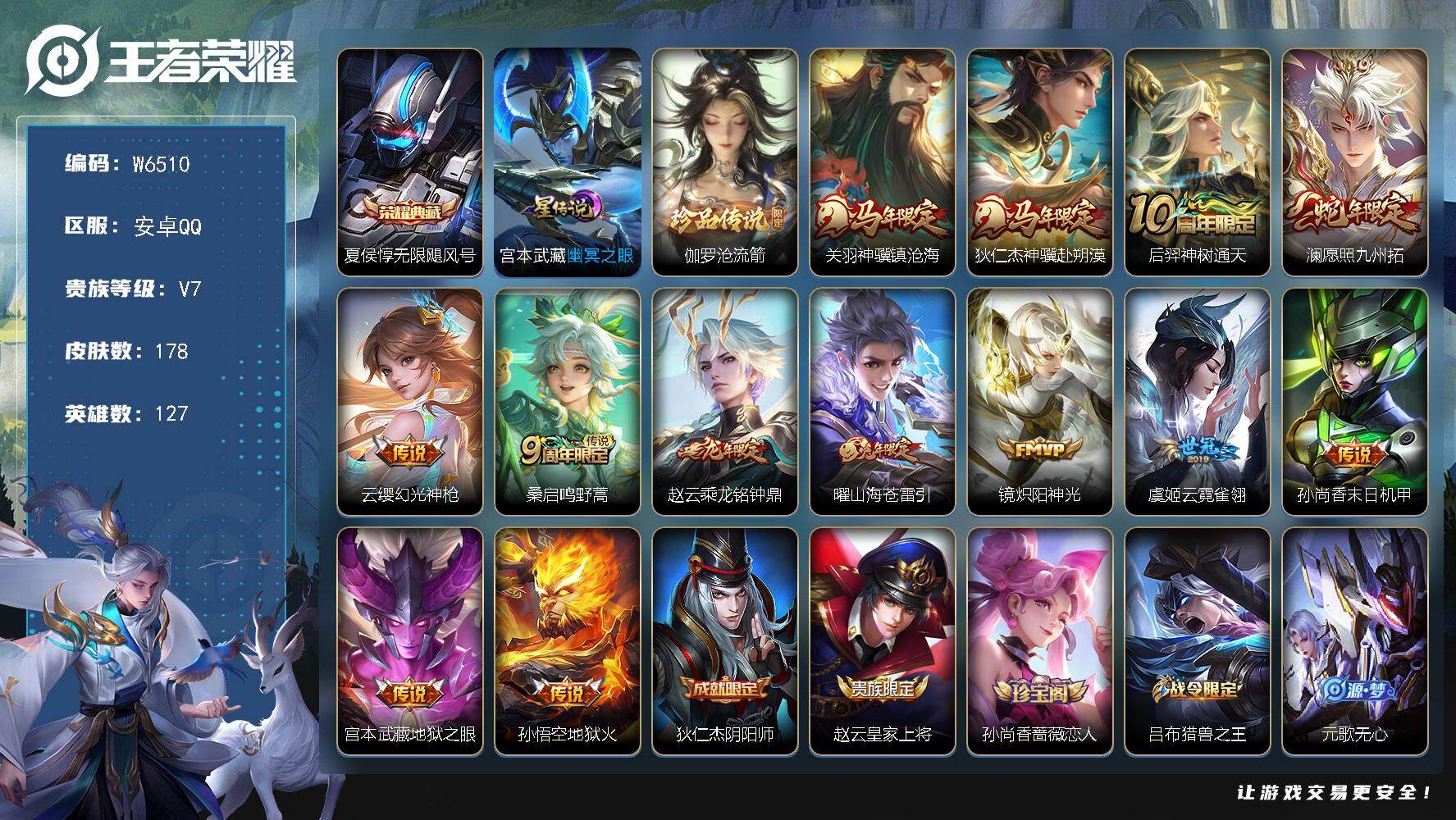 实名: 可修改 贵族等级: V7 英雄数: 128 皮肤数: 178 无双皮: