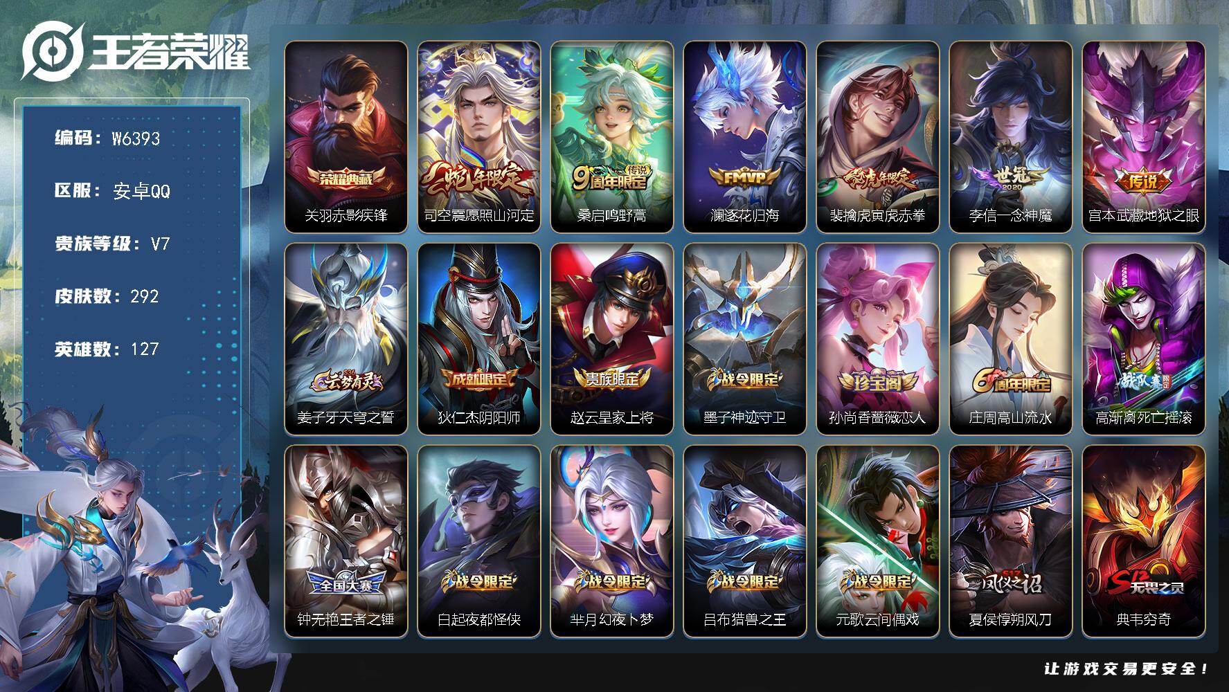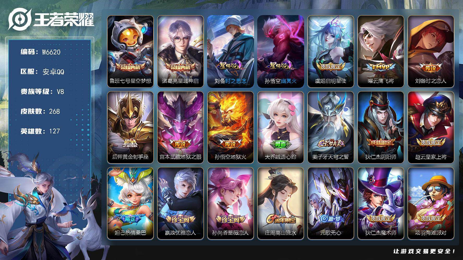 安卓Q-V6-永恒钻石I段位-129英雄-215皮肤-1典藏皮肤-1珍品传说-