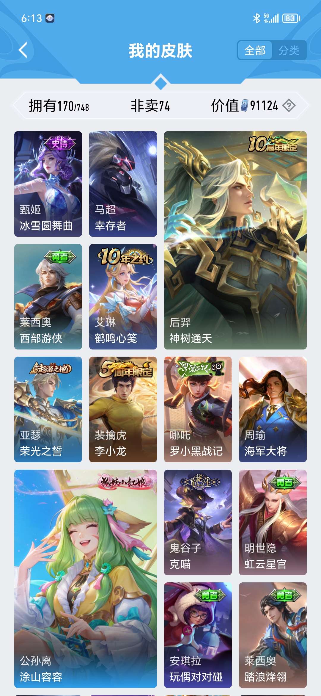 安卓QQ-1典藏-10传说-161皮肤-126英雄-无双王者-王者荣耀