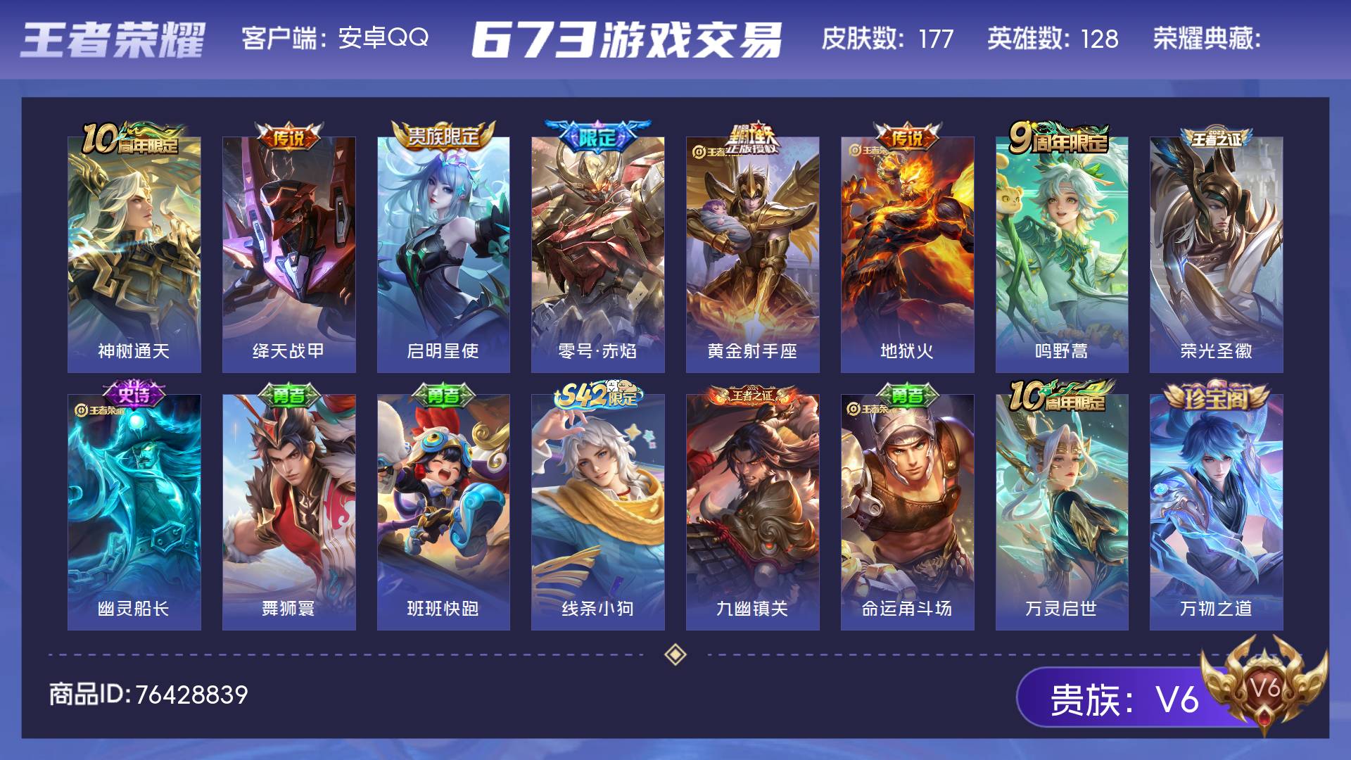 V6 皮肤177 英雄128 永恒钻石 传说7