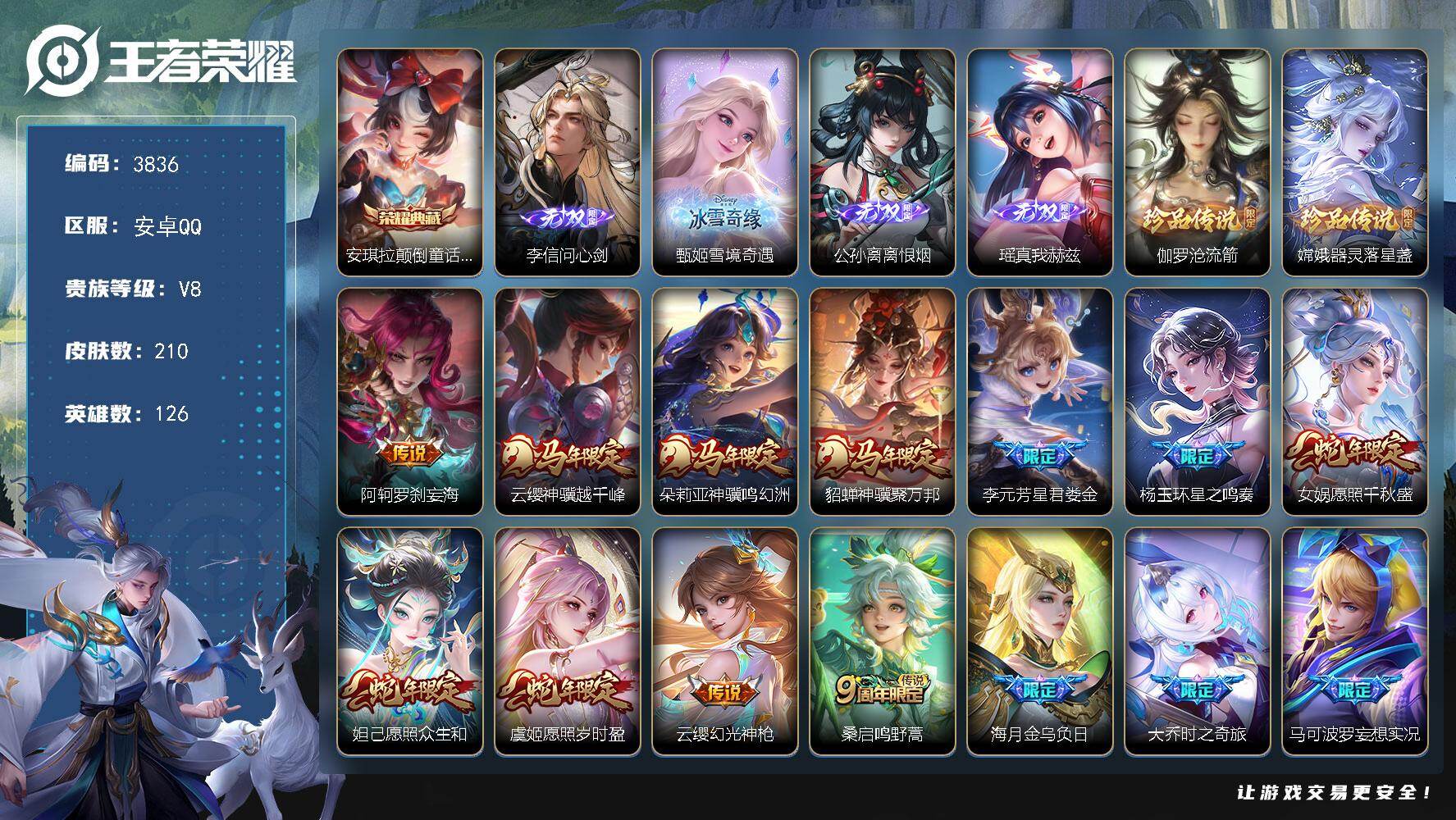 【蛇年限定全套】实名: 可修改 贵族等级: V9 英雄数: 129 皮肤数:
