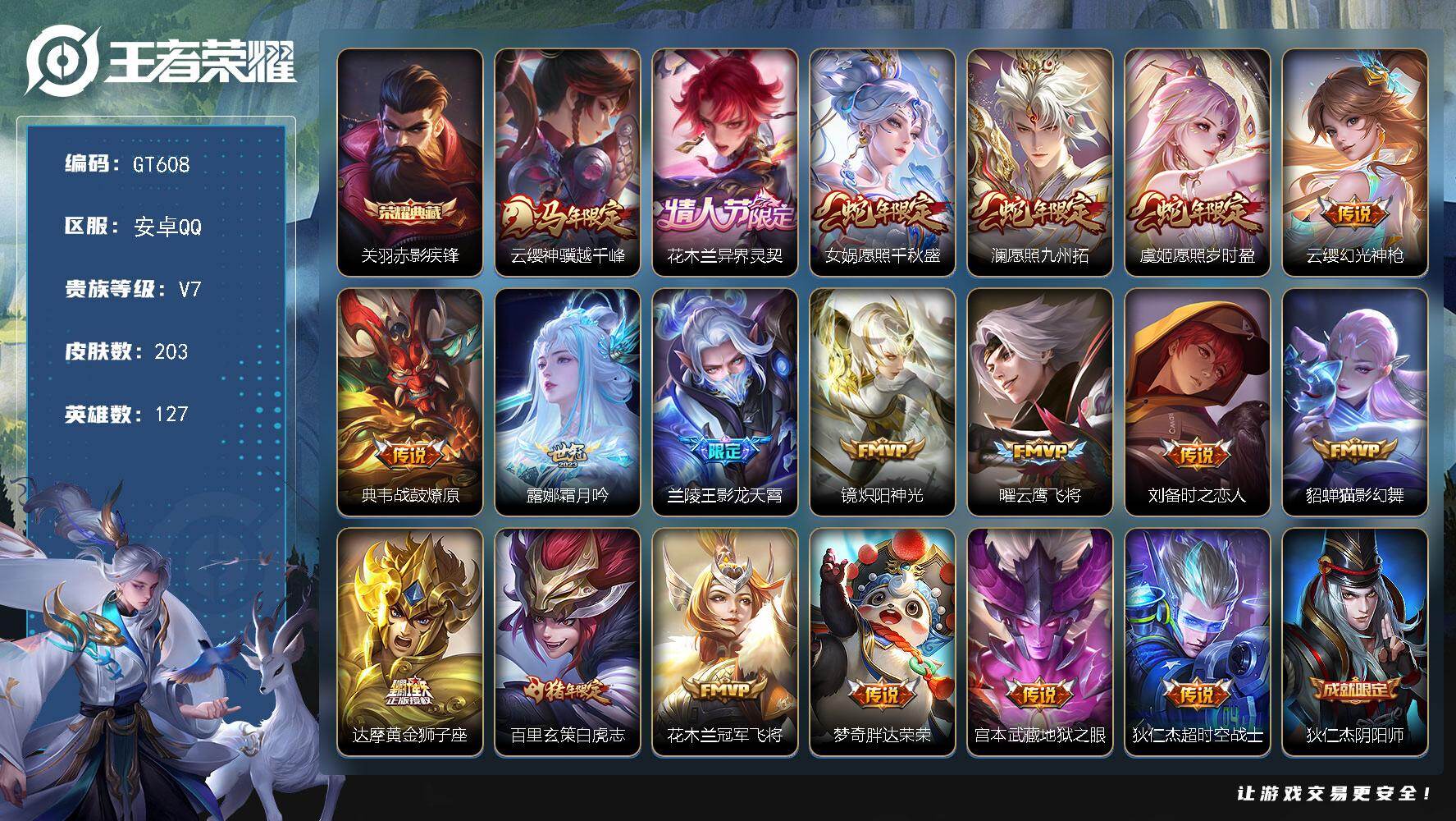 【16776840】贵族7/皮肤295/传说1/史诗70/英雄130/刘邦全皮