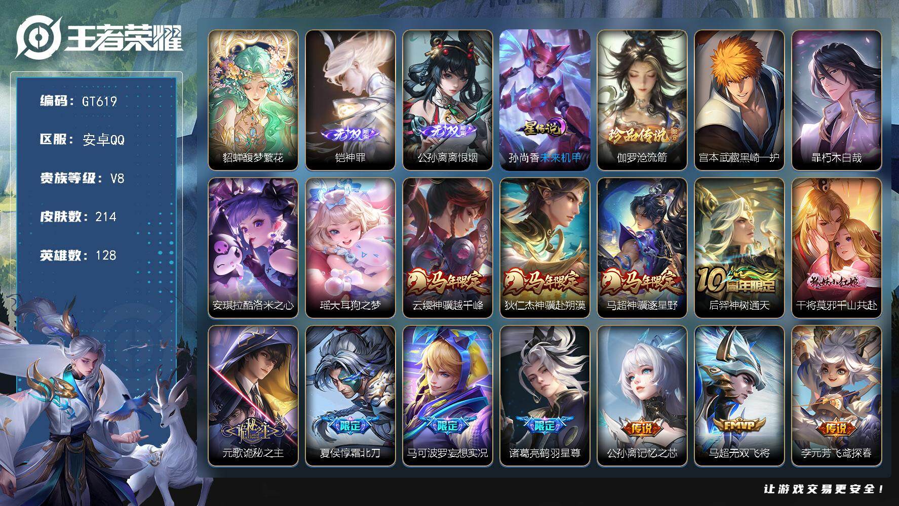 苹果Q-V8-至尊星耀IV段位-128英雄-287皮肤-1典藏皮肤-1无双-2