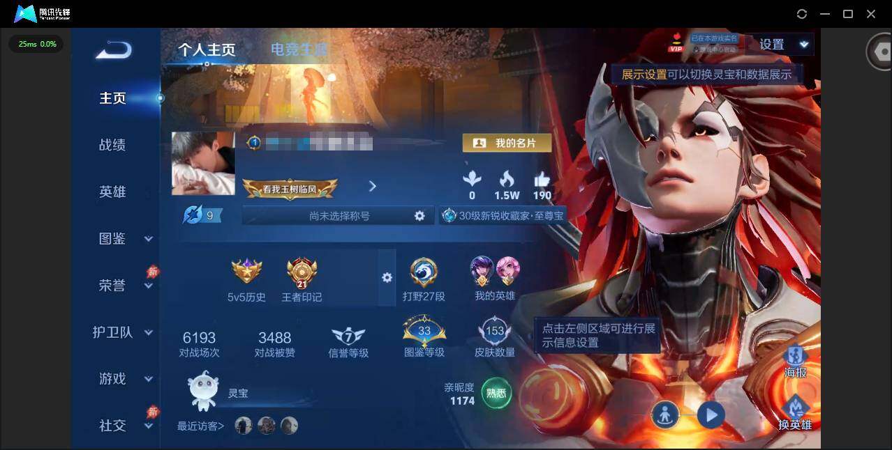 实名: 可修改 贵族等级: V7 英雄数: 127 皮肤数: 230 荣耀水晶