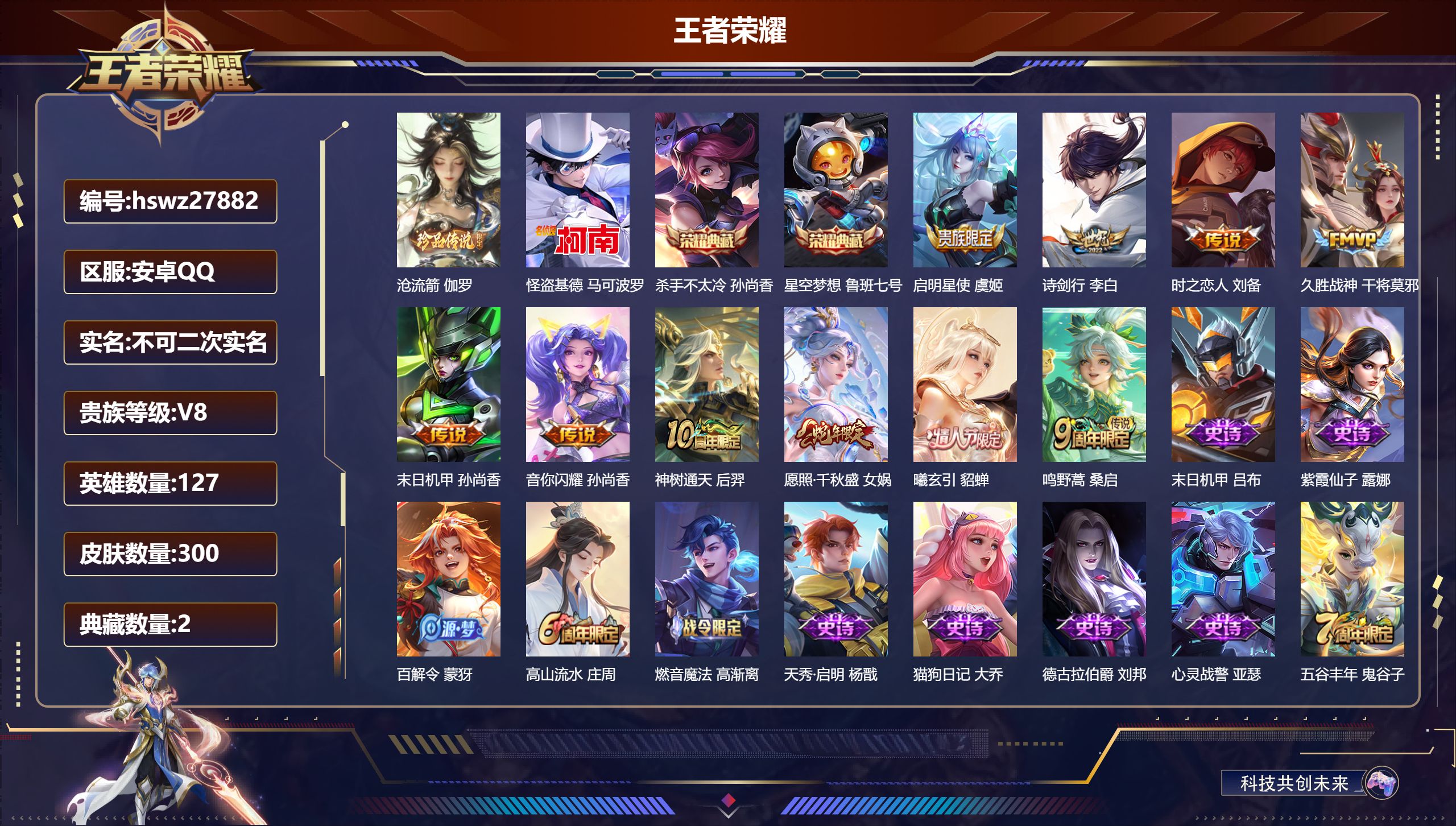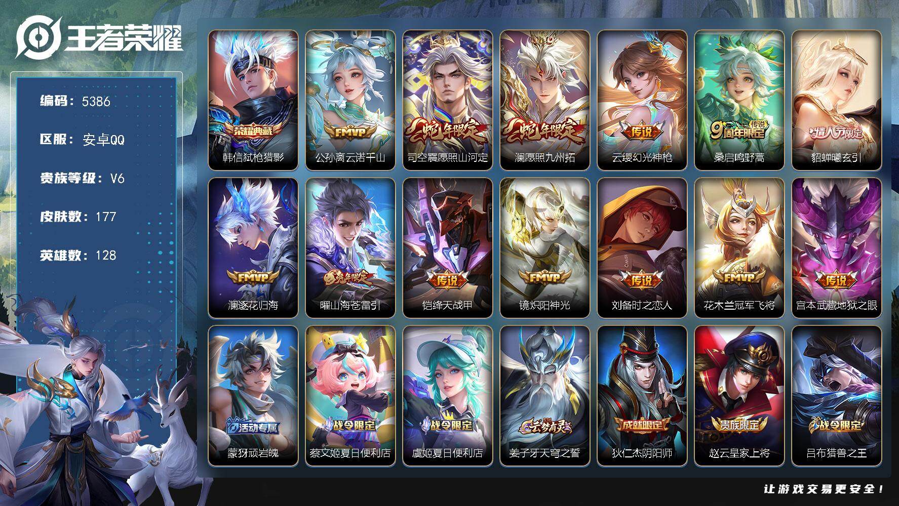 安卓Q-V6-尊贵铂金III段位-128英雄-177皮肤-1典藏皮肤-13传说