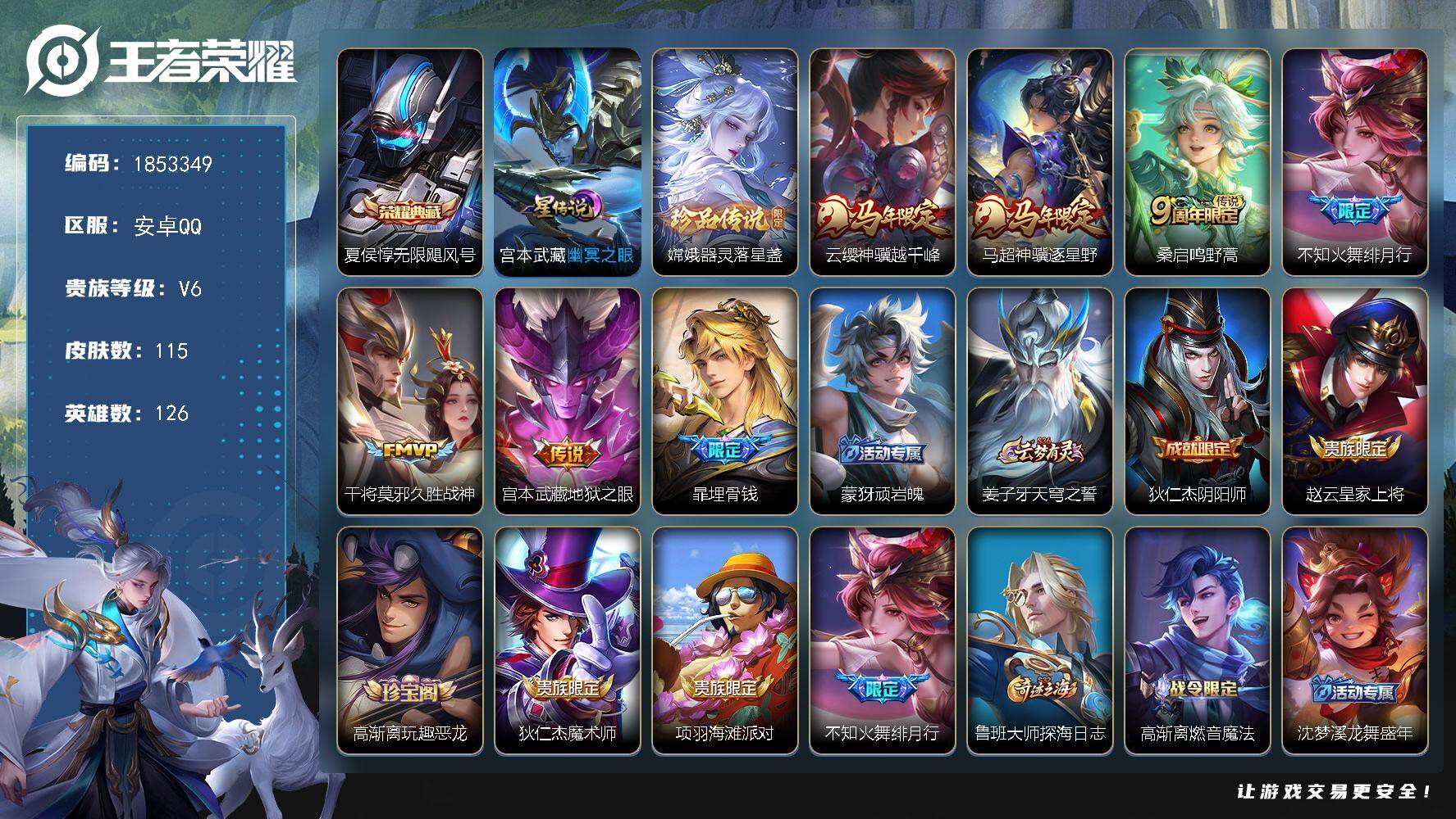 【金标扁鹊】实名: 可修改 贵族等级: V6 英雄数: 127 皮肤数: 15