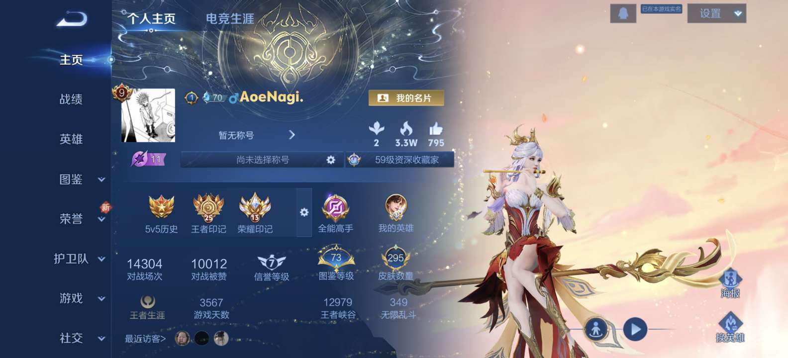 贵族等级: V7 英雄数: 126 皮肤数: 247 无双皮: 器灵·螭龙剑