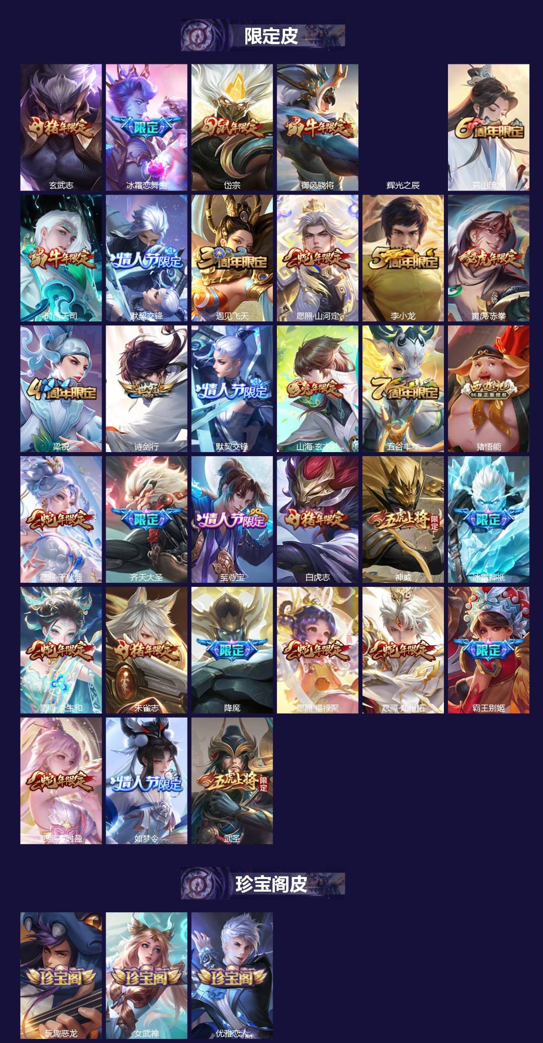 V8 皮肤288 英雄128 非凡王者 荣耀典藏2 珍品传说1 星传说2 传说29