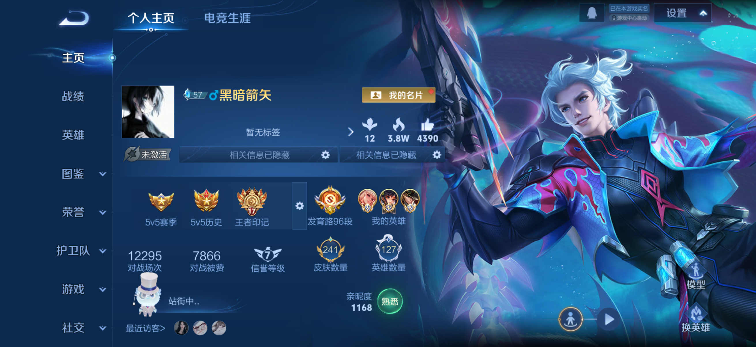 安卓QQ/非凡王者/216皮肤/126英雄/1典藏/0珍品无双/1无双/5珍品传说/6传说/66史诗