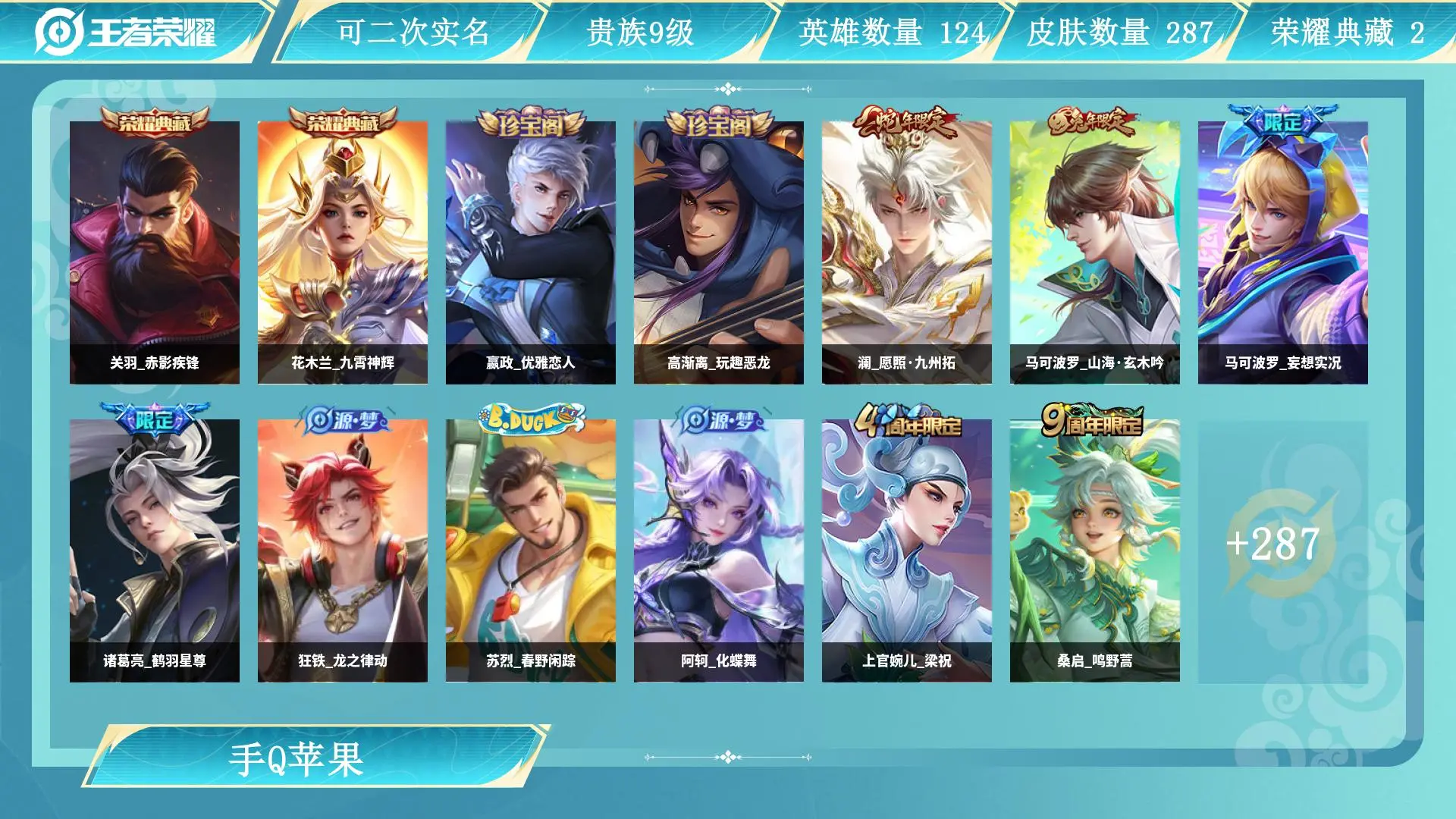皮肤数287典藏皮肤数2传说皮肤数22星传说皮肤数1史诗皮肤