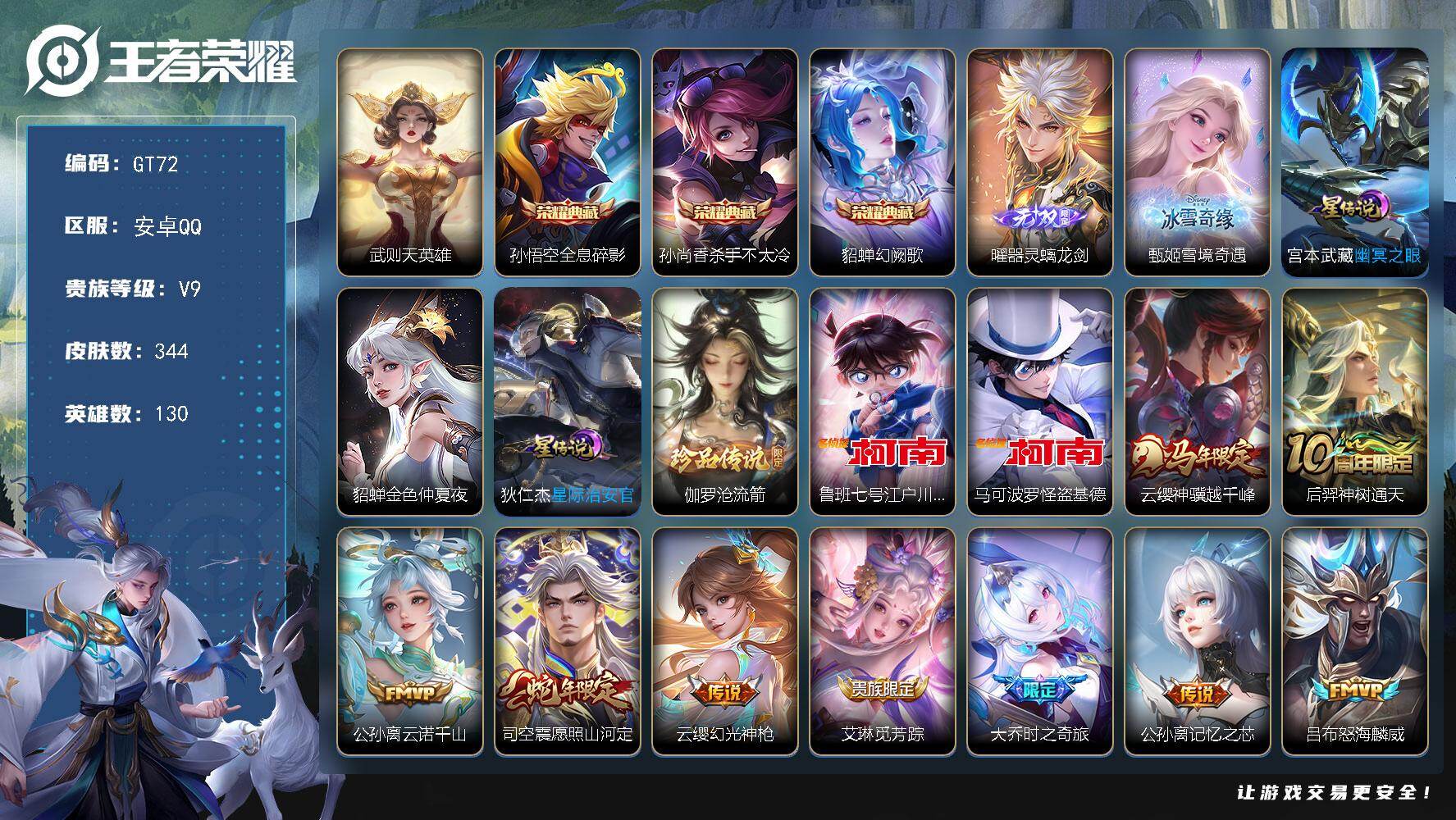 安卓QQ/荣耀王者/202皮肤/126英雄/0典藏/0珍品无双/0无双/2珍品传