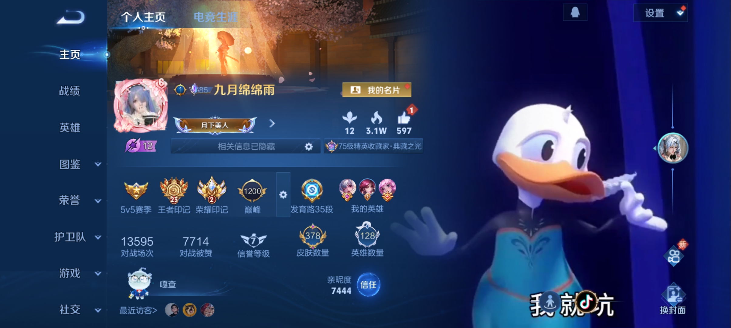 安卓微信-6传说-214皮肤-125英雄-荣耀黄金-C3WGJW号 贵族6 星元皮肤3 传说皮肤6 史诗皮肤52 皮肤数量214 皮肤价值:131024
